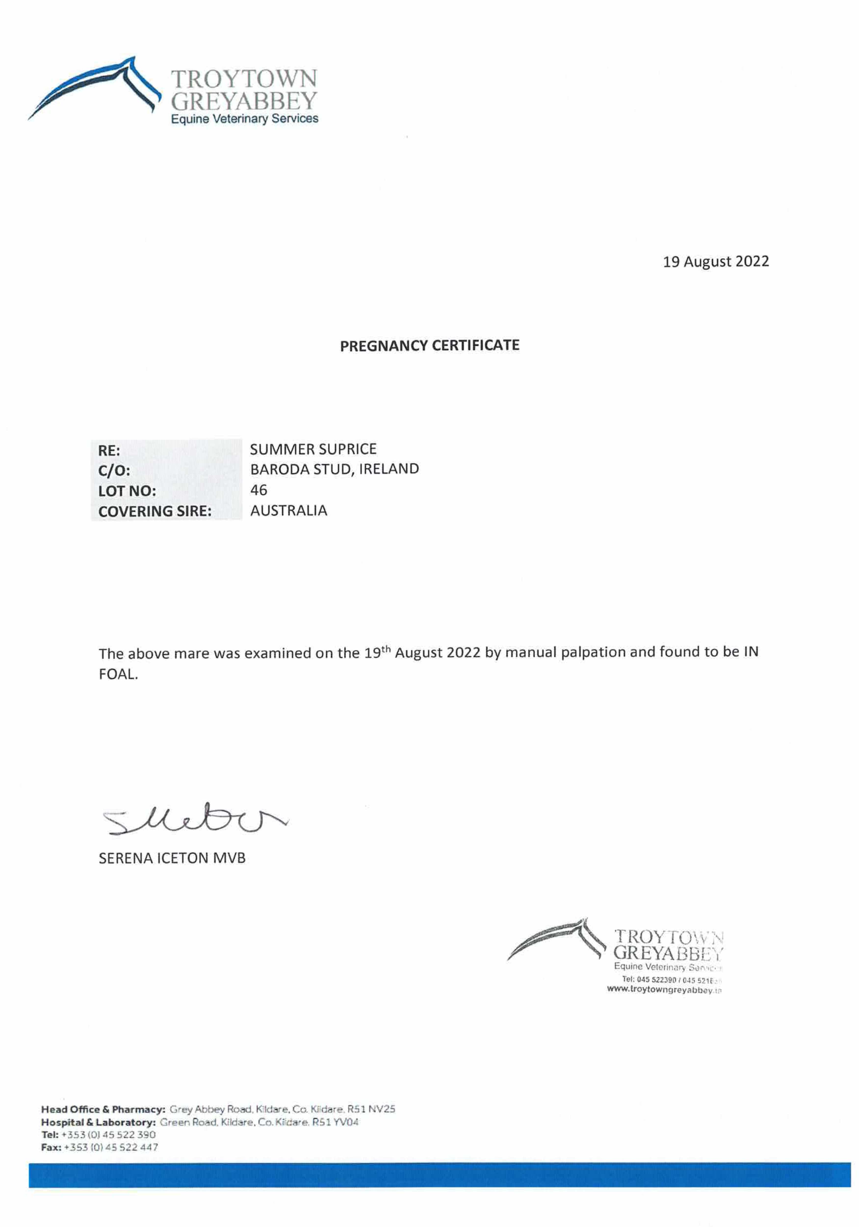 Consignor: Baroda Stud, Ireland