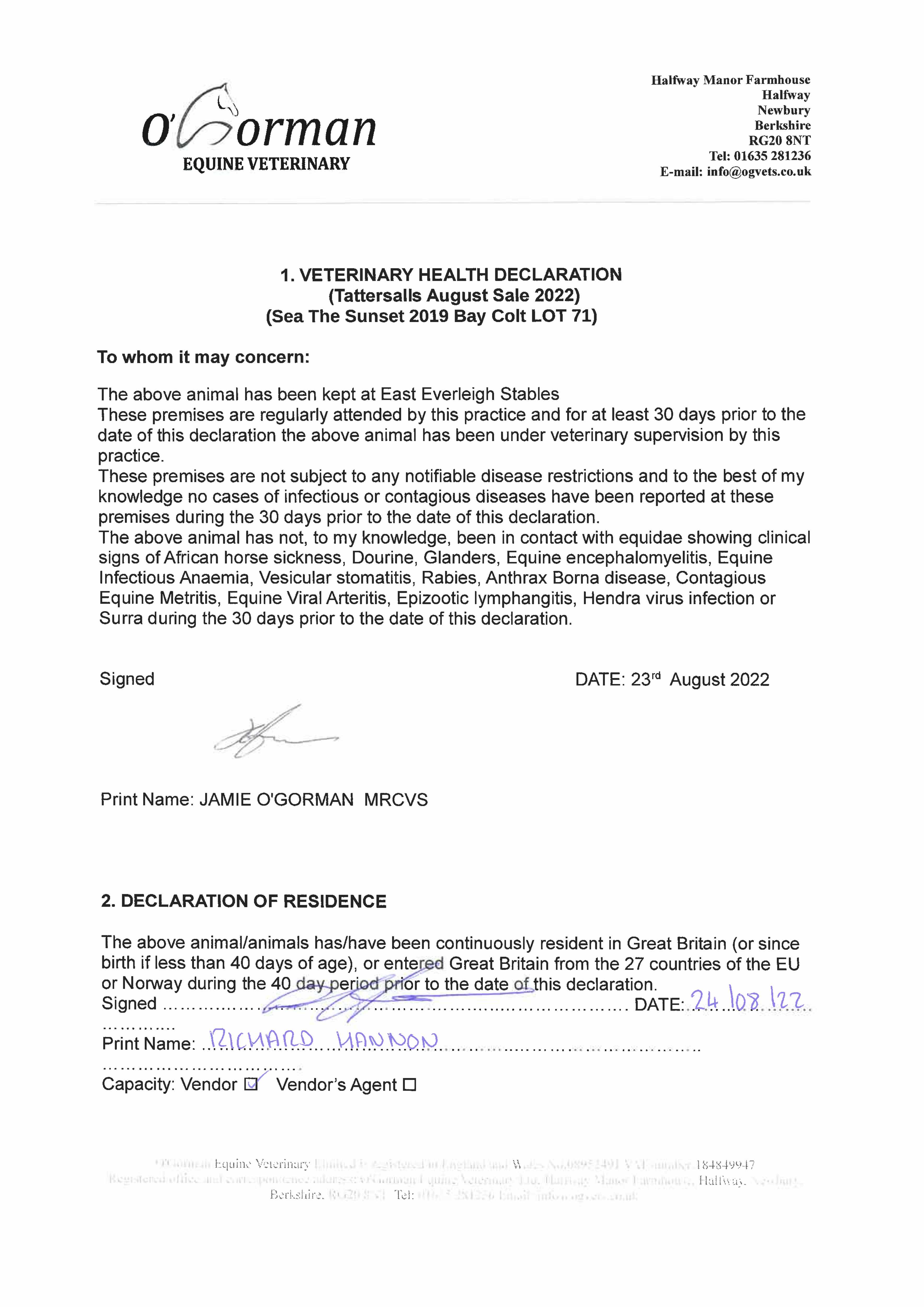 December Foal Sale 2024 lot 230 C. by Ten Sovereigns (IRE) 2024, Barton Stud=>Vendor 5,000 gns