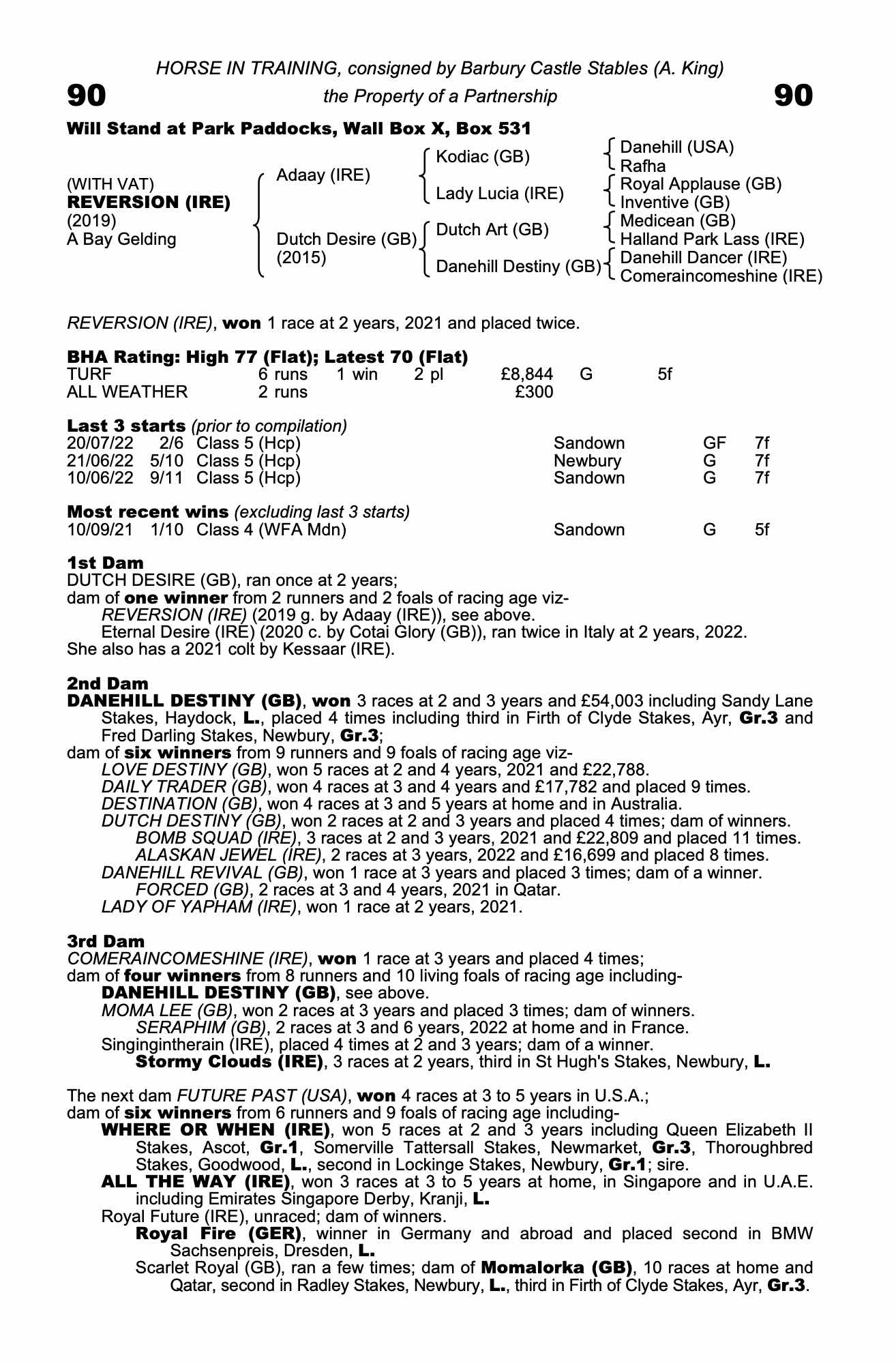 Consignor: Barbury Castle Stables (A. King)