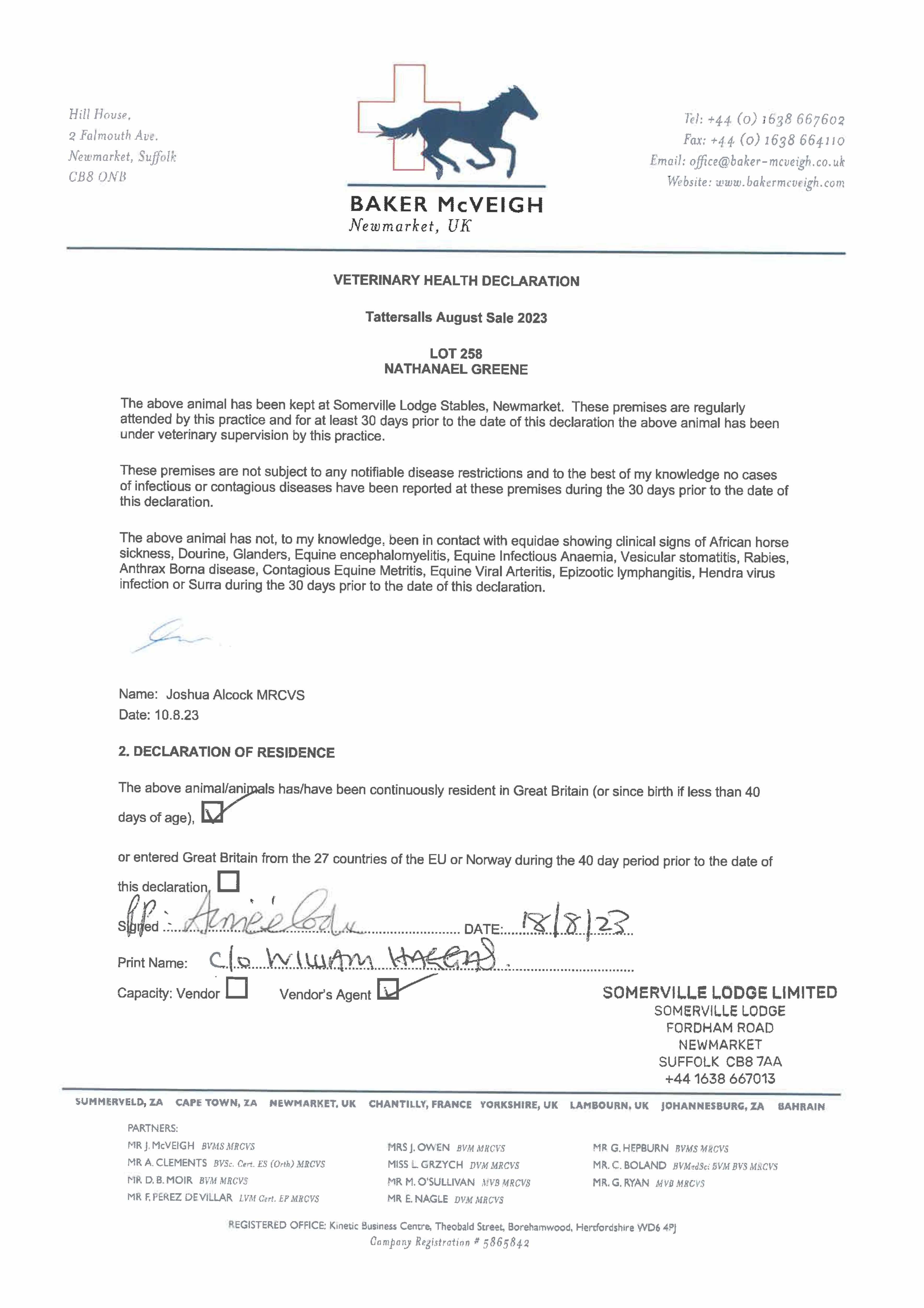 Consignor: Somerville Lodge Ltd. (W. Haggas), Agent