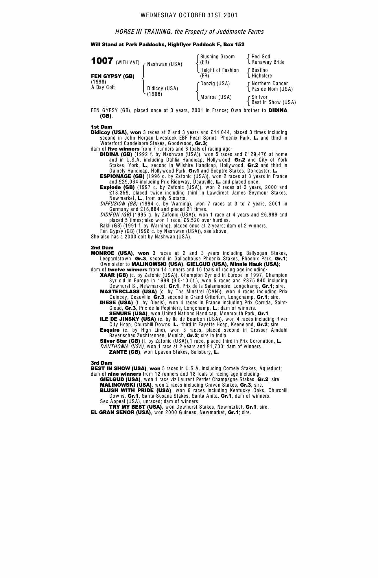 Autumn Horses in Training Sale 1999 lot 952 Didifon (GB) (C. by Zafonic (USA)), Juddmonte Farms=>N Meade 22,000 gns