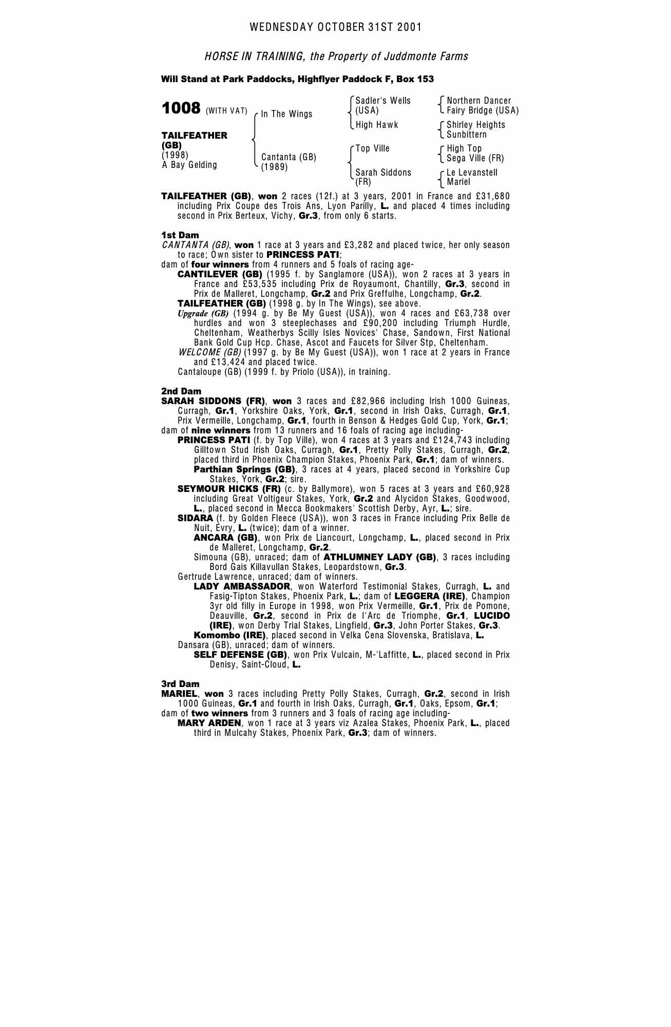 Autumn Horses in Training Sale 2000 lot 999 Welcome (GB) (C. by Be My Guest (USA)), Juddmonte Farms=>D Bridgewater 42,000 gns