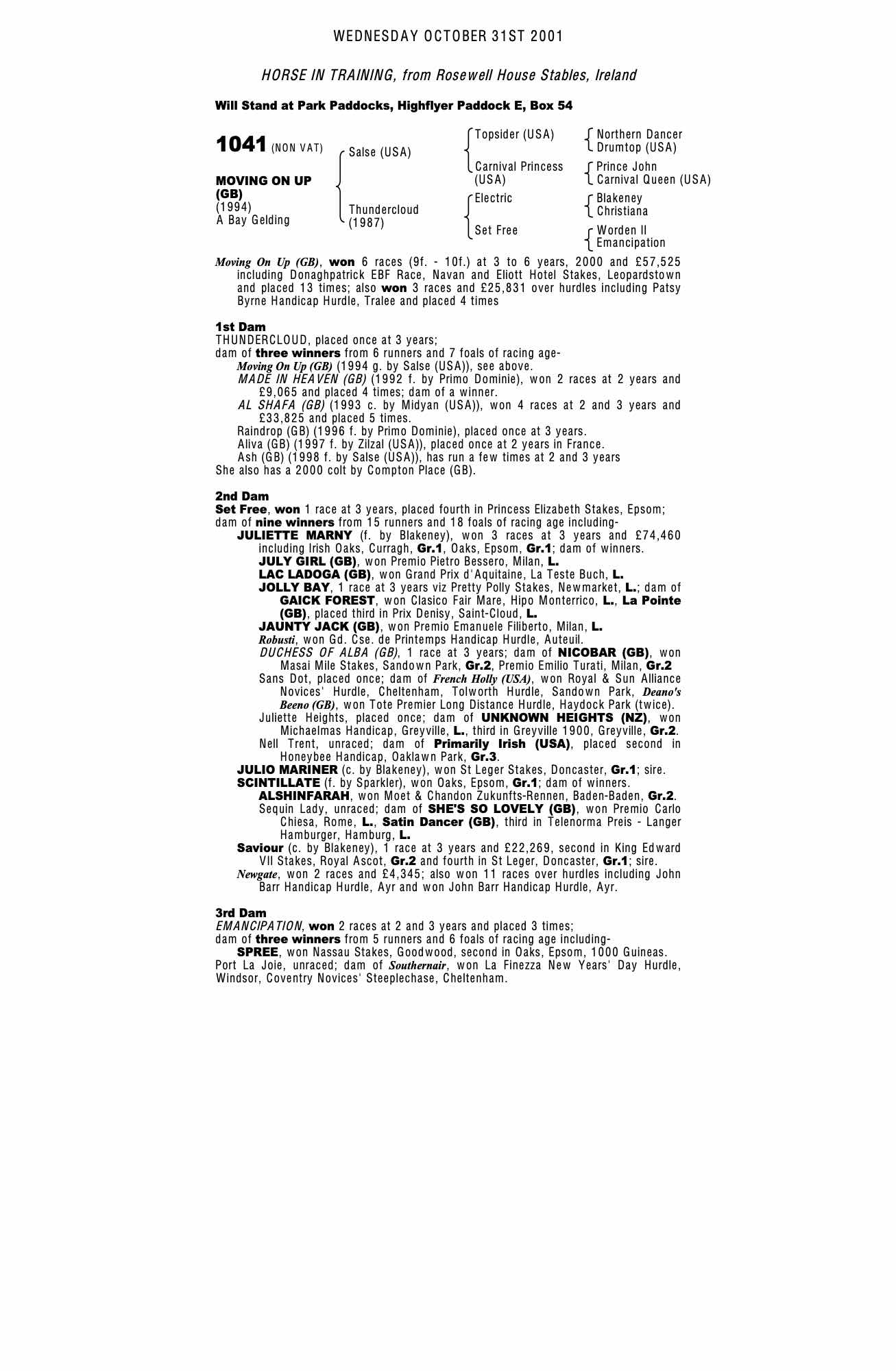 October Yearling Sale 2001 lot 540 C. by Compton Place (GB) , Fonthill Stud=>Bobby O'Ryan 26,000 gns