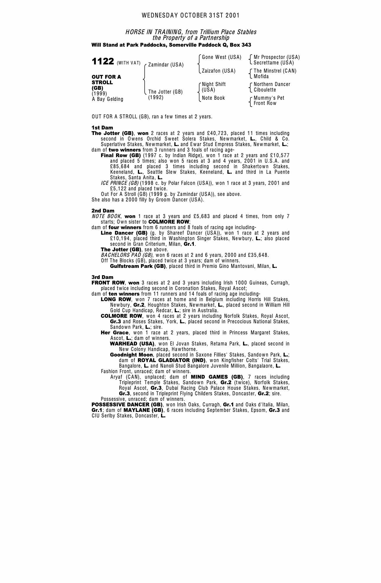 October Yearling Sale 2001 lot 537 F. by Groom Dancer (USA) , Burton Agnes Stud=>Lot Not Sold 24,000 gns