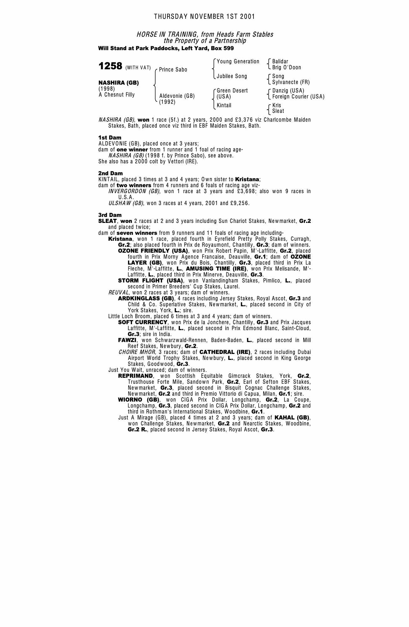October Yearling Sale 2002 lot 641 C. by Inchinor (GB) 2001, Whatton Manor Stud=>Sir Mark Prescott BT 27,000 gns