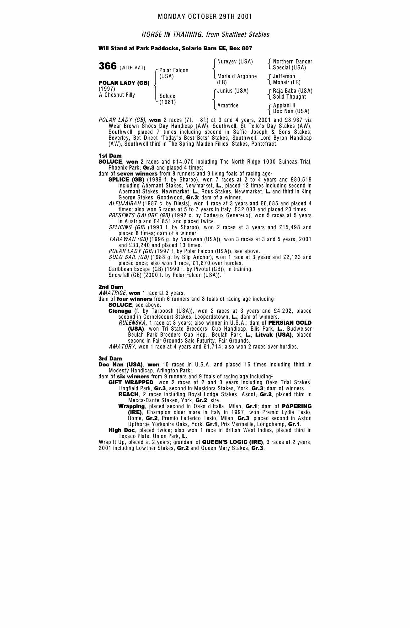 July Sale 2000 lot 145 Polar Lady (GB) (F.), Pegasus Stables=>David Morris 17,500 gns