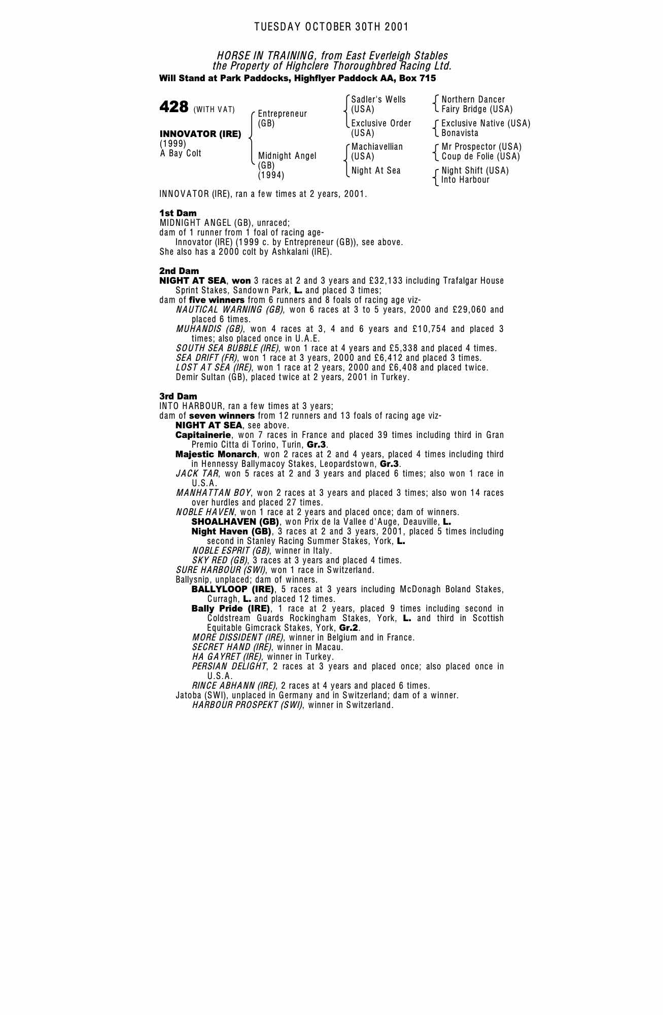 October Yearling Sale 2000 lot 438 C. , Killeen Castle Stud, Ireland=>John Warren Bloodstock 30,000 gns