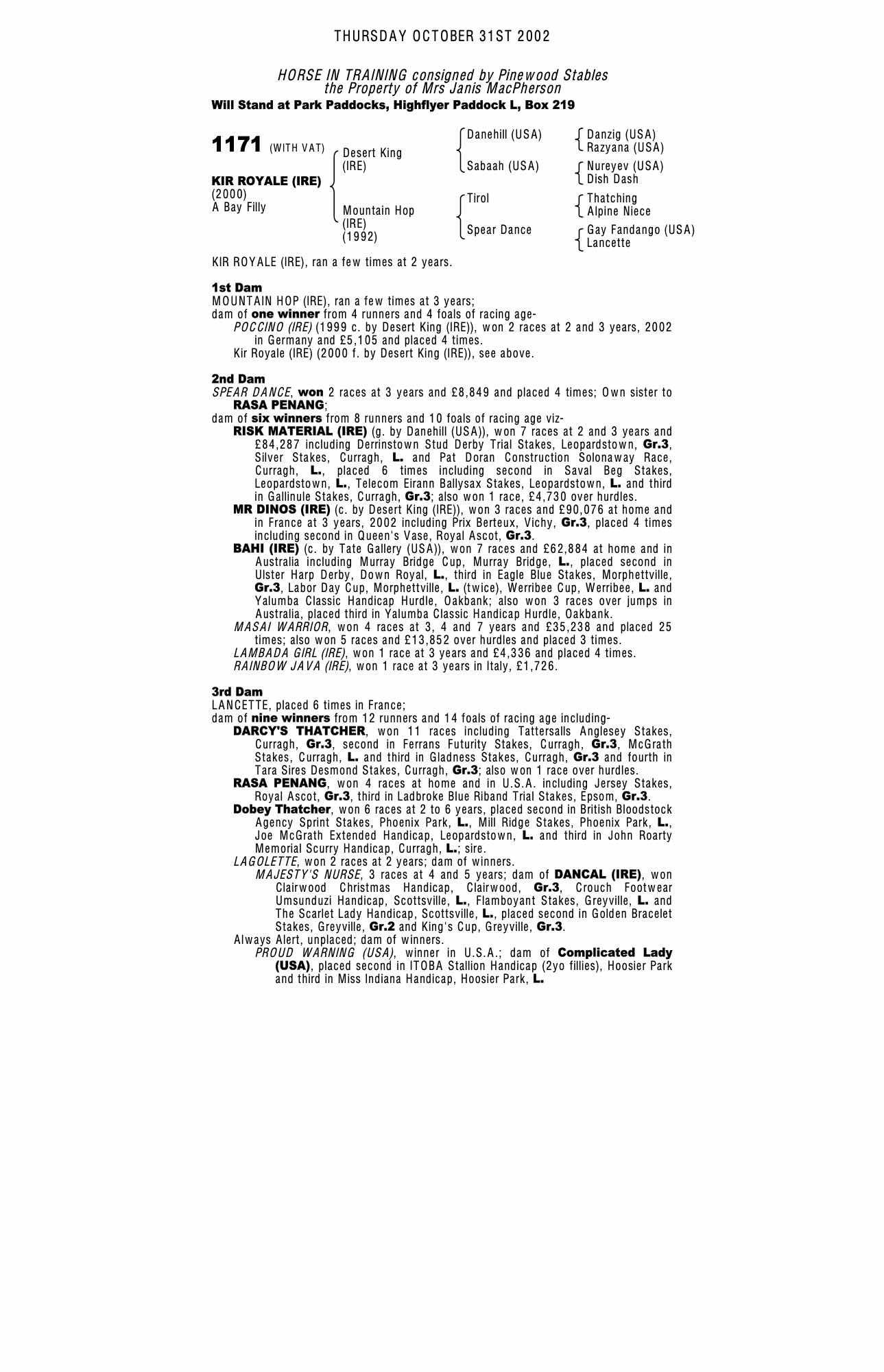 Autumn Horses in Training Sale 1998 lot 1160 Carousal (IRE) (F. by Distinctly North (USA)), East Everleigh Stables=>Will Edmeades Bloodstock 1,500 gns