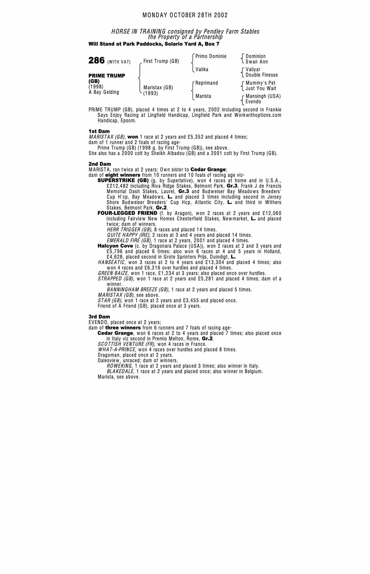 October Yearling Sale 1999 lot 891 C. , Red House Stud=>PW Harris 23,000 gns