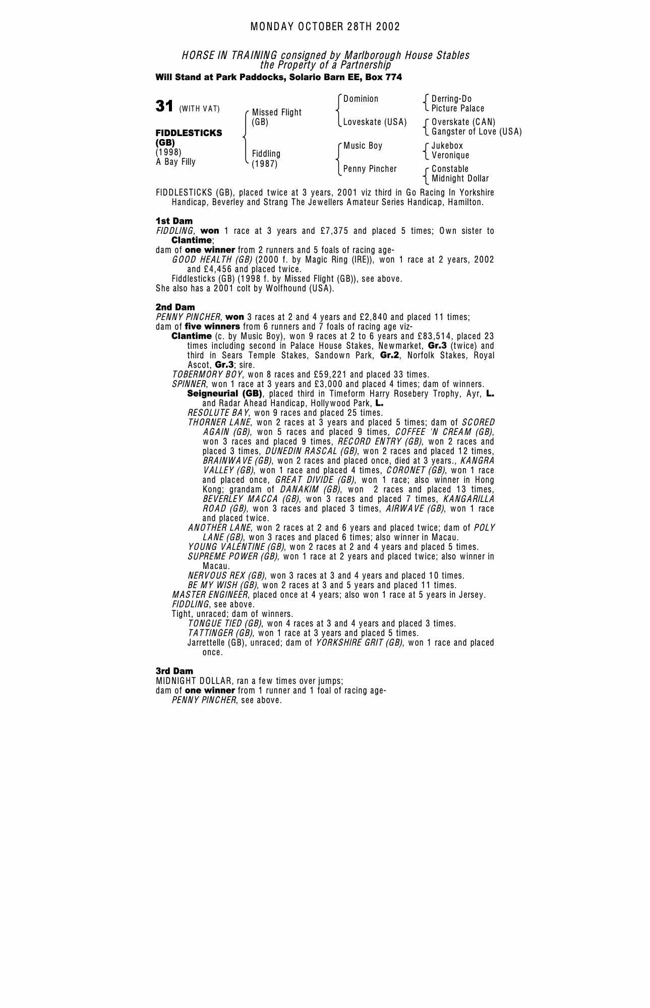 Autumn Horses in Training Sale 2003 lot 213 Good Health (GB) (F. by Magic Ring (IRE)), Somerville Lodge Stables=>R Knipe 6,500 gns