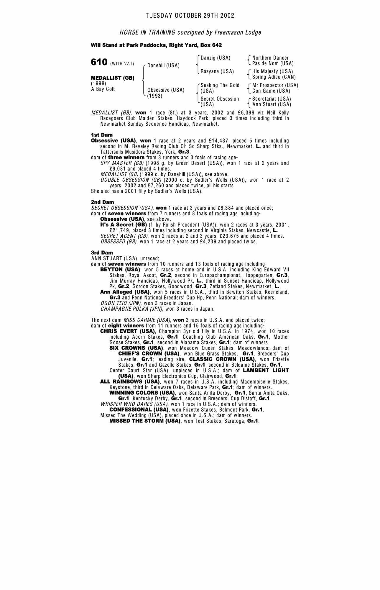 December Mare Sale 2003 lot 1623 Dance Solo (GB) (F. by Sadler's Wells (USA)), Freemason Lodge=>KD Ellerbracke 15,000 gns