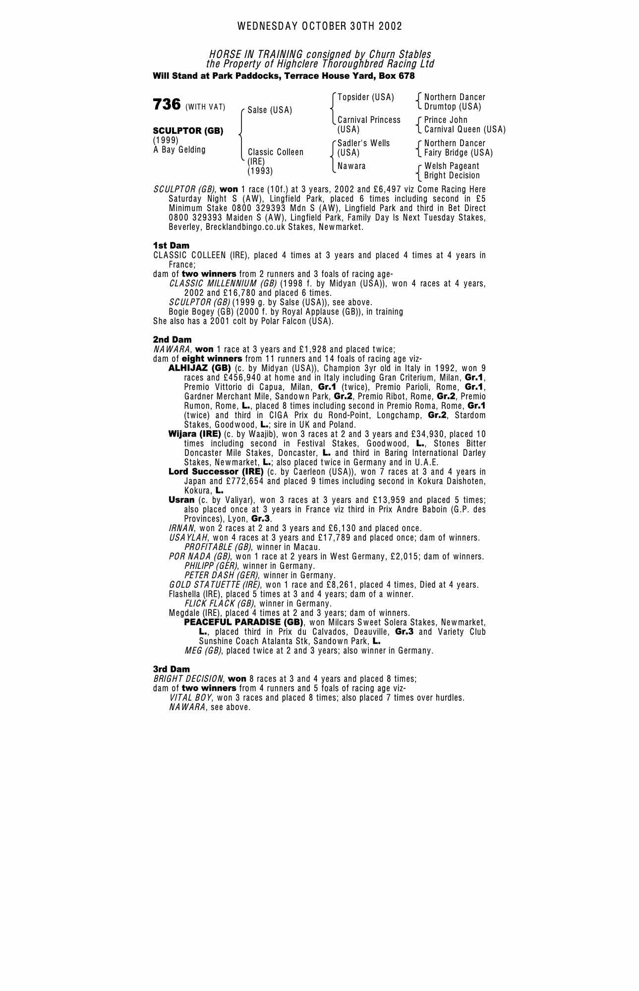 Autumn Yearling Sale 2002 lot 1794 C. by Polar Falcon (USA) 2001, Herringswell Manor Stud=>BBA Italia 1,700 gns