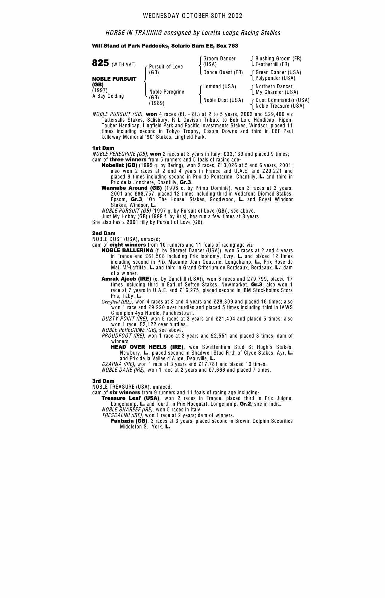 Autumn Horses in Training Sale 2000 lot 882 Noble Pursuit (GB) (C.), Loretta Lodge Stables=>Vendor 6,500 gns