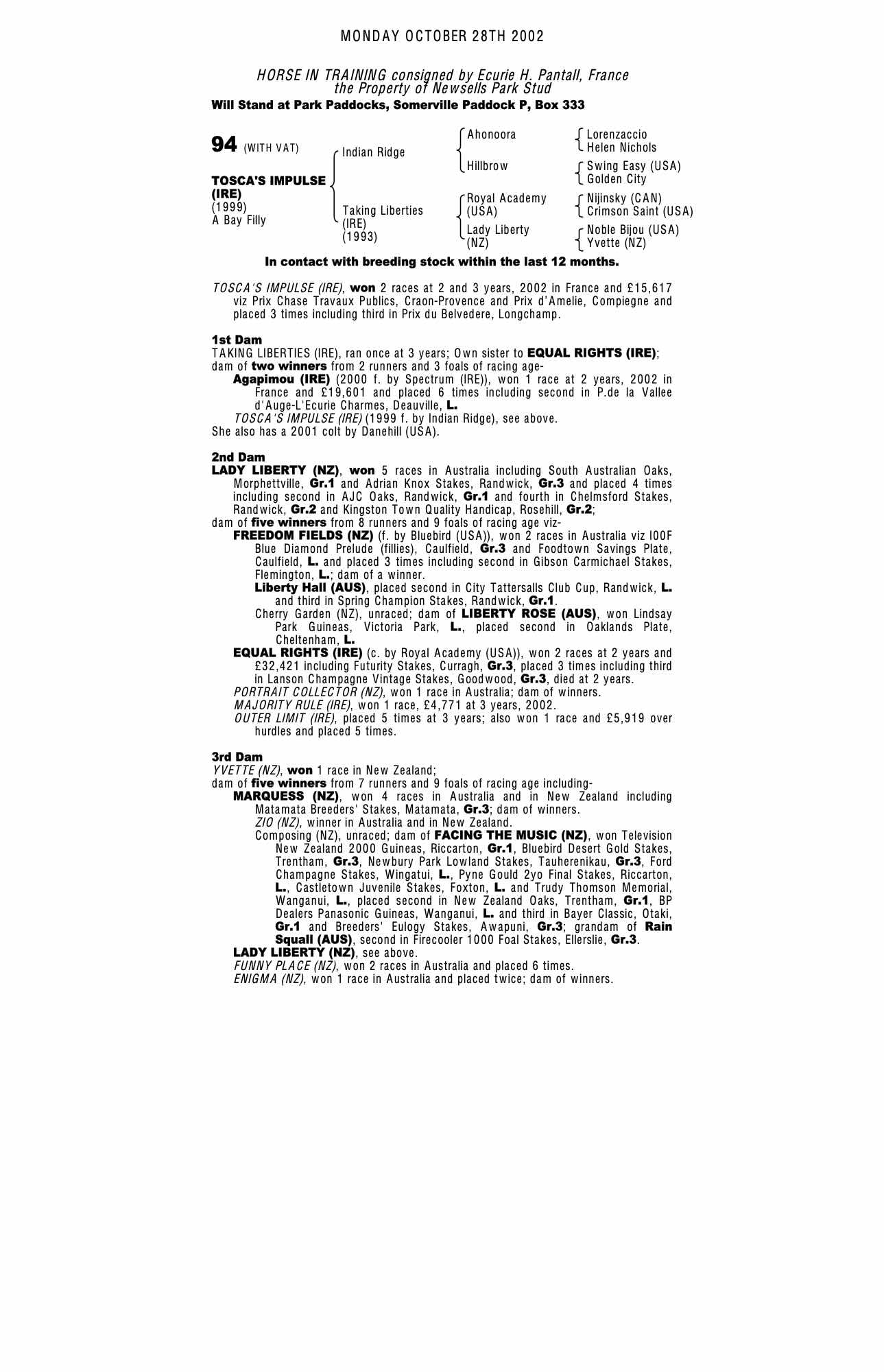 October Yearling Sale 2001 lot 743 F. by Spectrum (IRE) , Camas Park Stud, Ireland=>Darpat 7,500 gns
