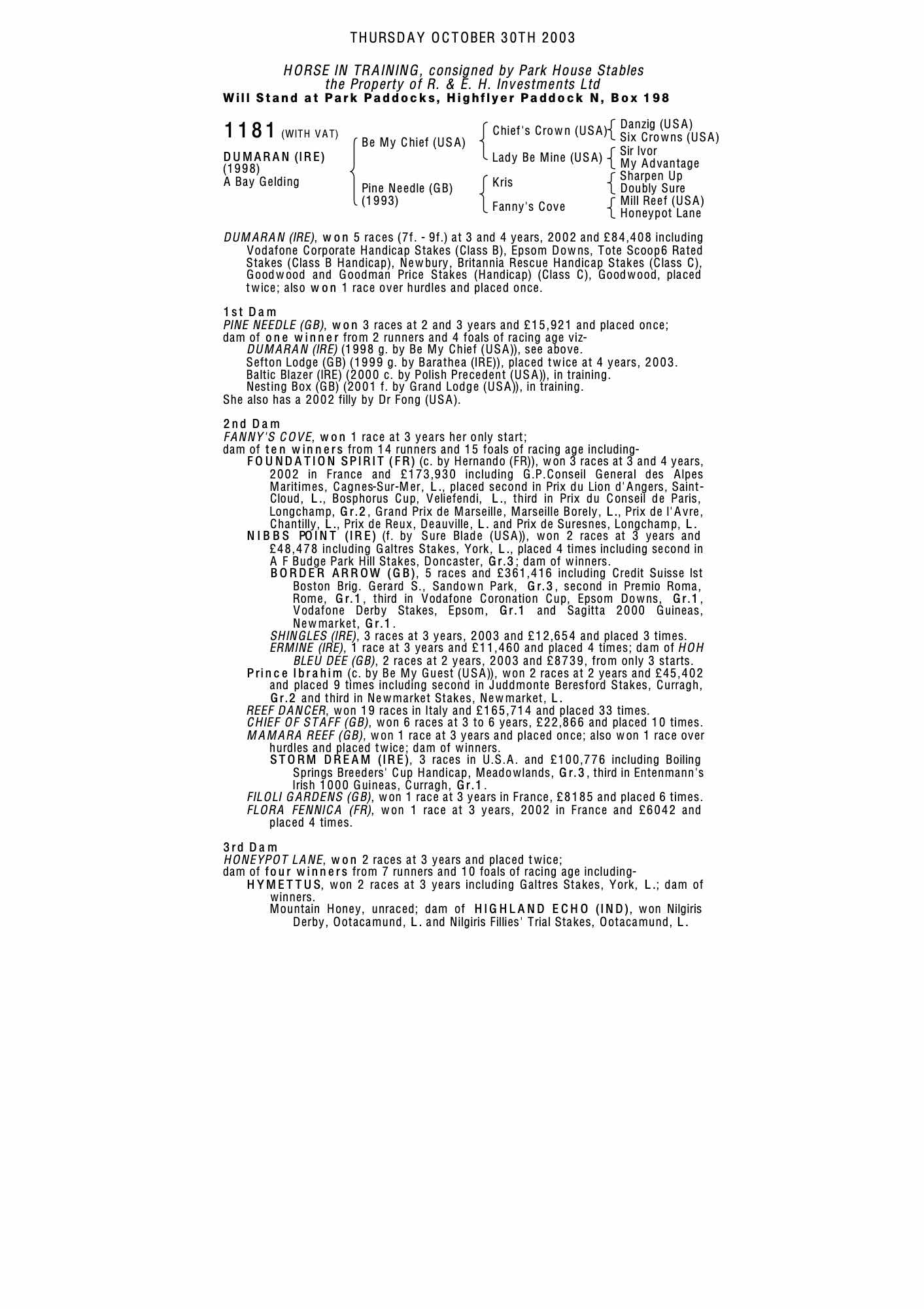 October Yearling Sale, Book 1 2004 lot 558 C. by Alhaarth (IRE) 2003, Highclere Stud=>Lot Not Sold 24,000 gns