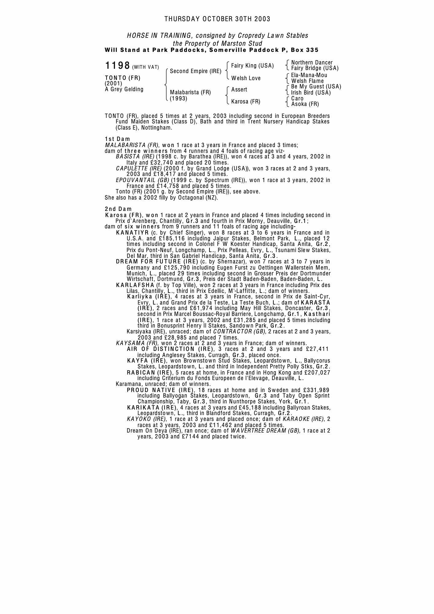 October Yearling Sale 2002 lot 567 C. 2001, Marston Stud=>CASH 15,000 gns