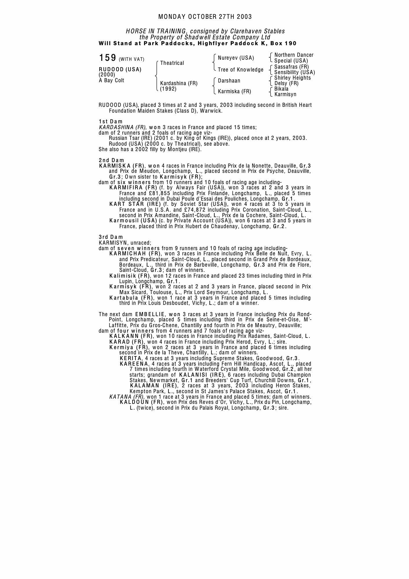 Houghton Yearling Sale 2001 lot 75 C. , Lynn Lodge Stud, Ireland (Agent)=>Shadwell Estate Company 220,000 gns