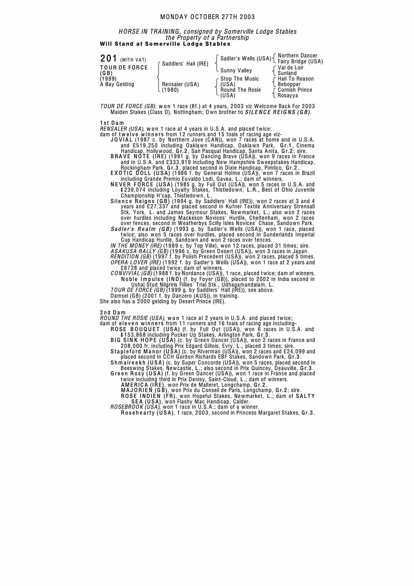 December Mare Sale 2003 lot 2501 Opera Lover (IRE) (M. by Sadler's Wells (USA)), Bugley Stud=>CBA 11,500 gns