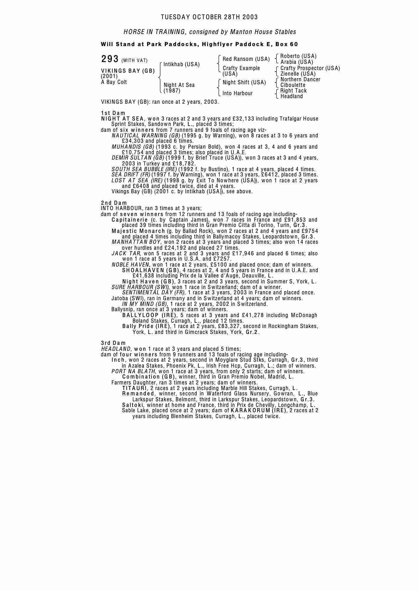 October Yearling Sale 2002 lot 573 C. 2001, Burton Agnes Stud=>J Gosden 14,000 gns