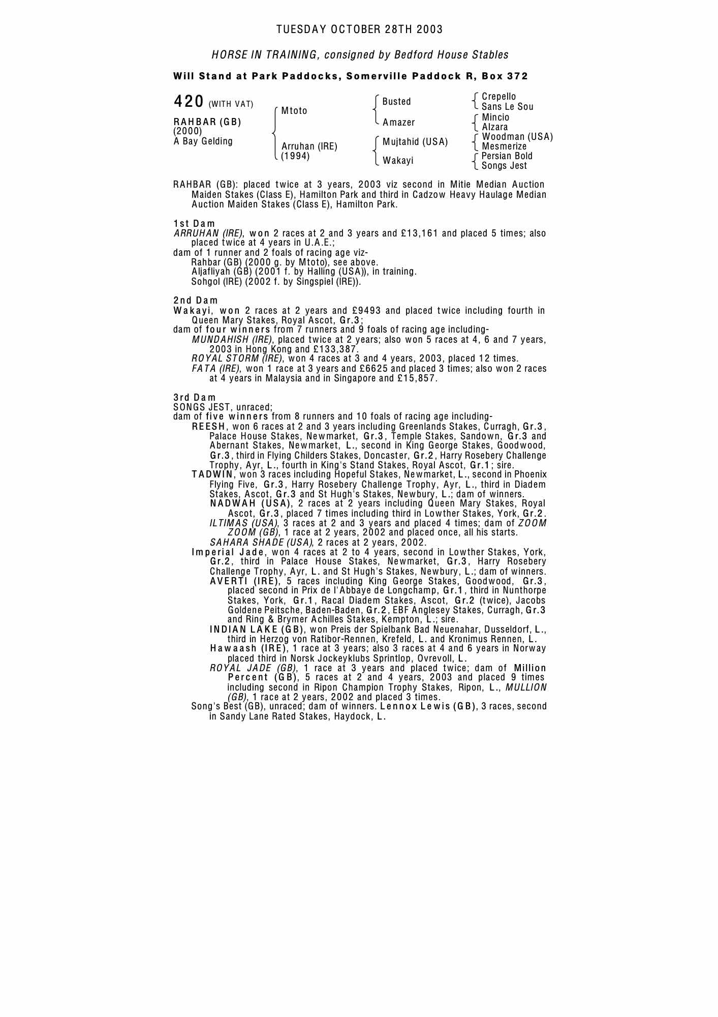 Autumn Horses in Training Sale 2006 lot 898 Sherjawy (IRE) (C. by Diktat (GB)), Bedford House Stables=>Zoe Davison 5,000 gns