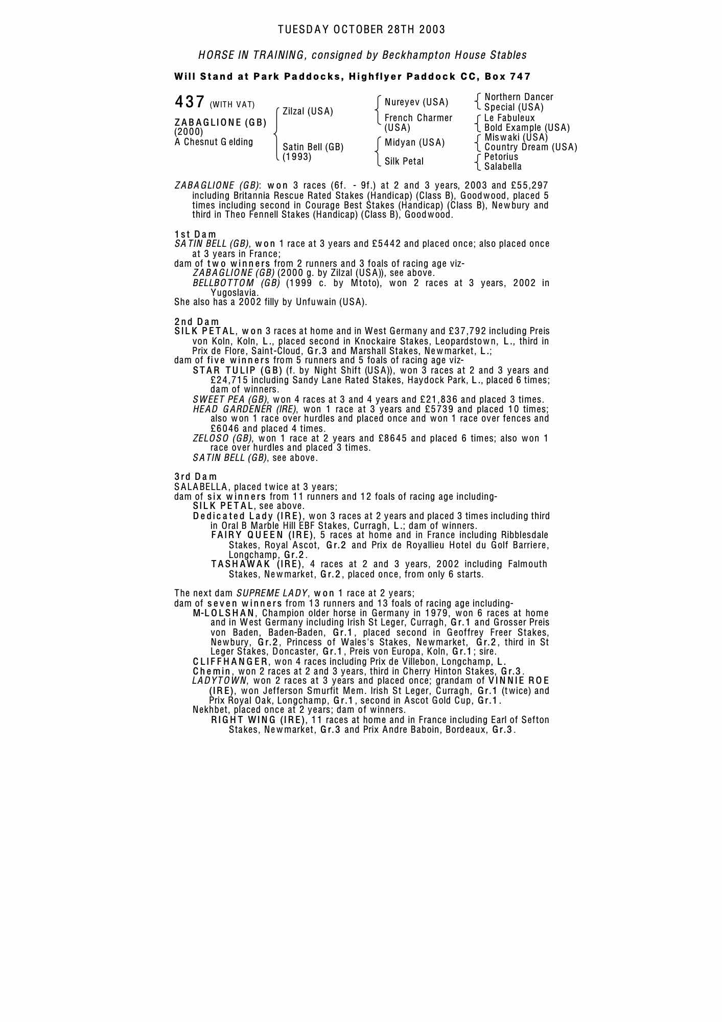 Autumn Horses in Training Sale 2001 lot 485 Bellbottom (GB) (C. by Mtoto), Castle Stables, Arundel=>McKeever St Lawrence 5,500 gns