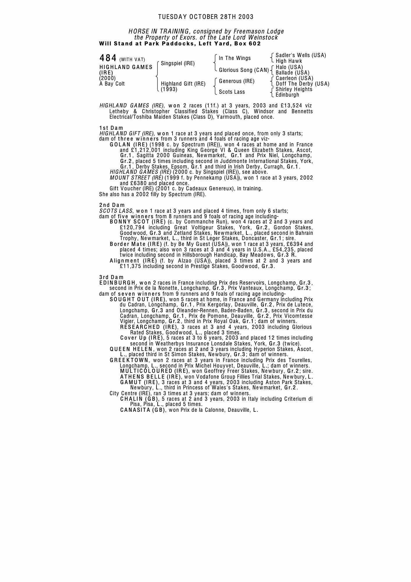 Autumn Horses in Training Sale 2004 lot 617 Gift Voucher (IRE) (C. by Cadeaux Genereux), Freemason Lodge=>Foster Bloodstock 70,000 gns