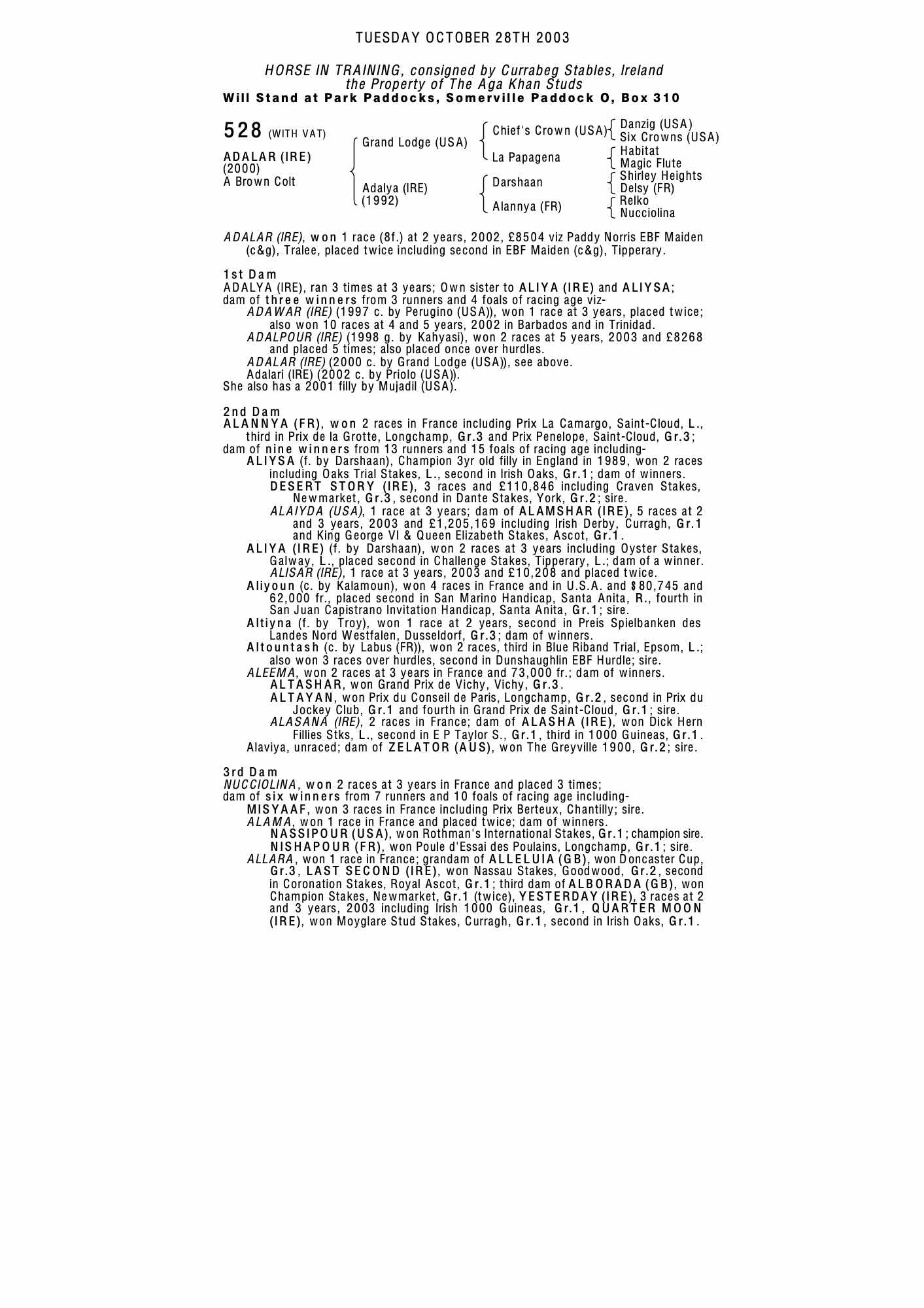 Autumn Horses in Training Sale 2001 lot 617 Adalpour (IRE) (C. by Kahyasi), Freemason Lodge=>Julia Feilden 8,000 gns