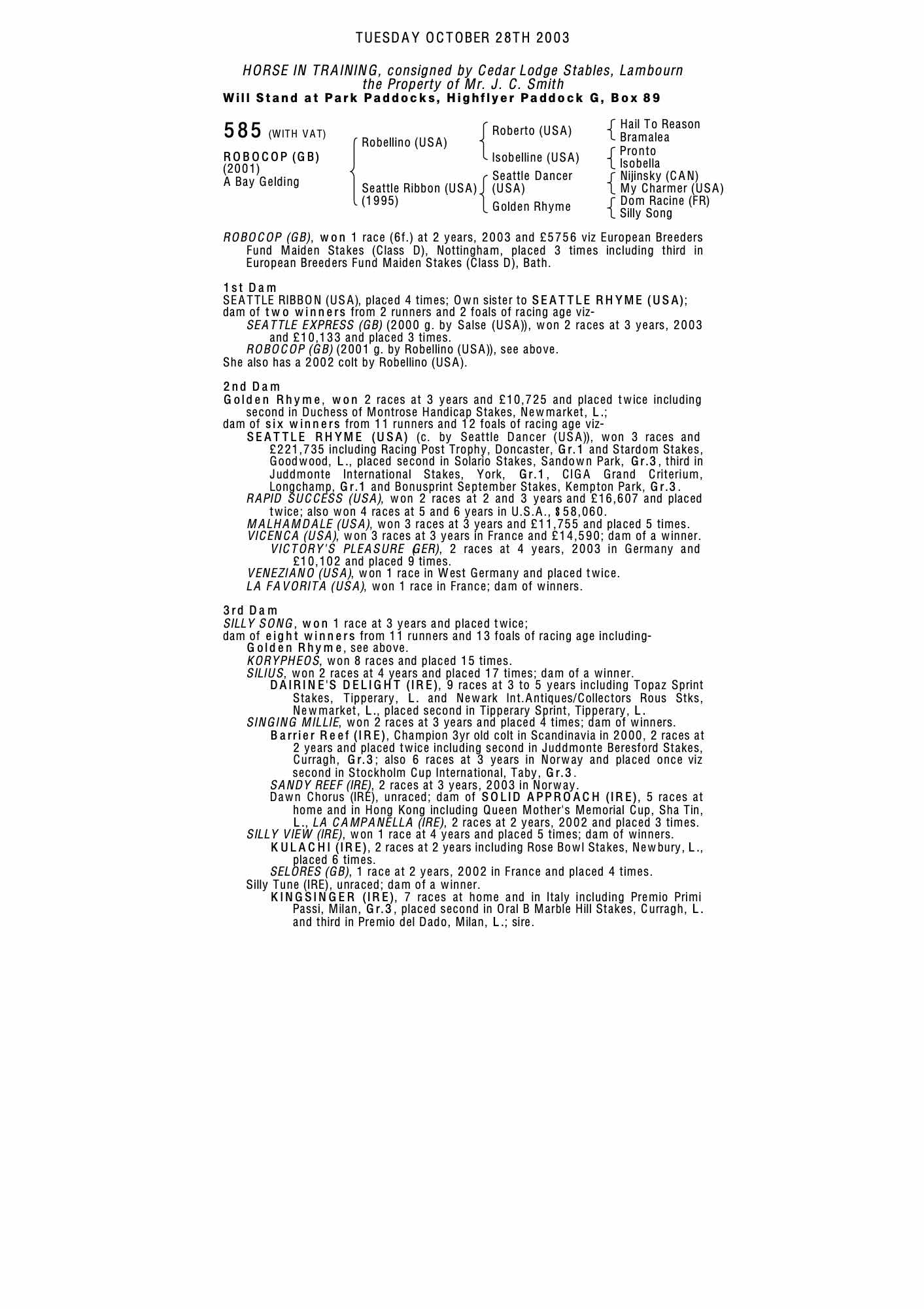 Autumn Horses in Training Sale 2003 lot 8 Seattle Express (GB) (G. by Salse (USA)), Planting House Stables=>Shawan Fares 3,200 gns