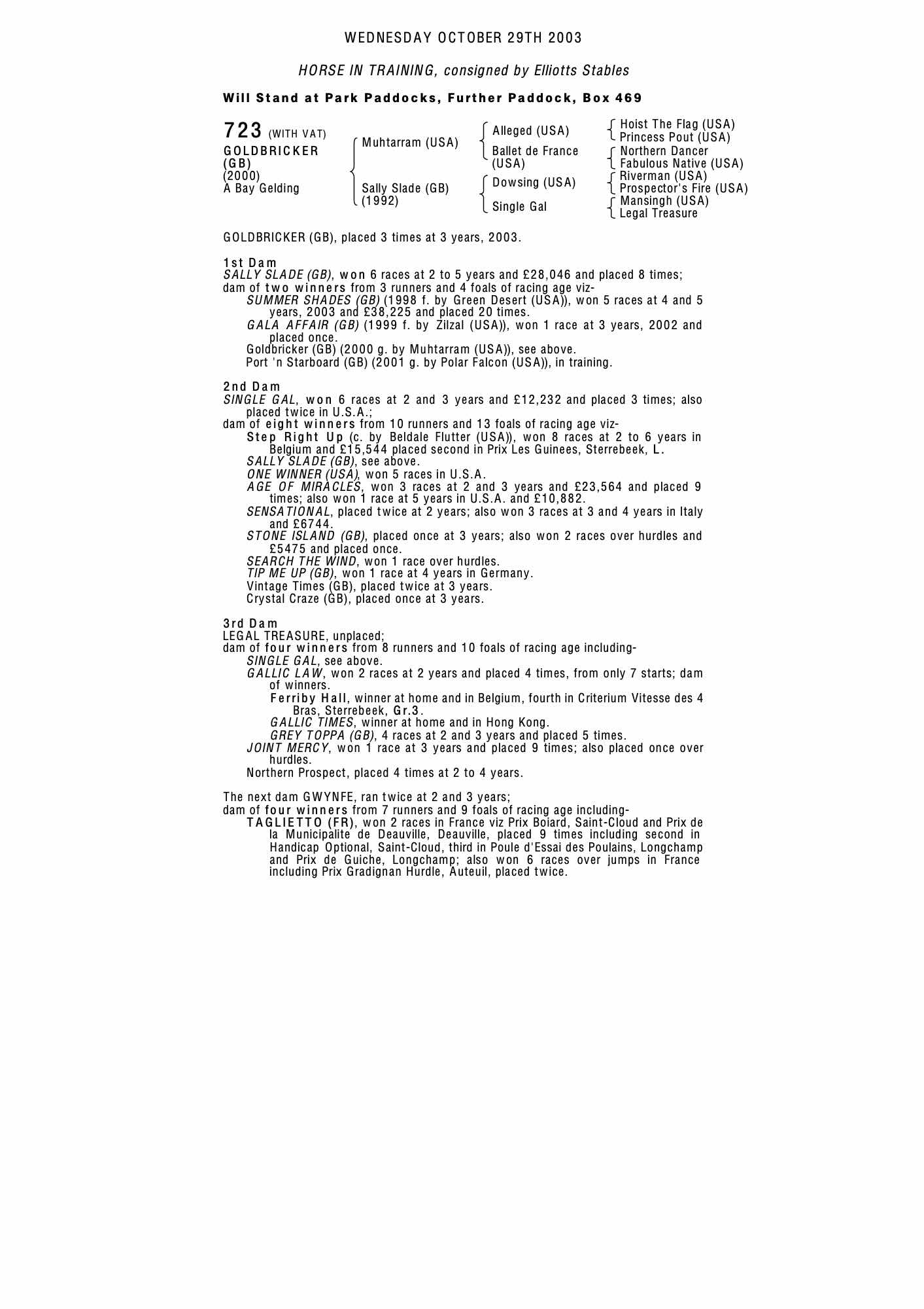 Autumn Horses in Training Sale 2001 lot 906 Summer Shades (GB) (F. by Green Desert (USA)), Elliotts Stables=>WM Brisbourne 800 gns