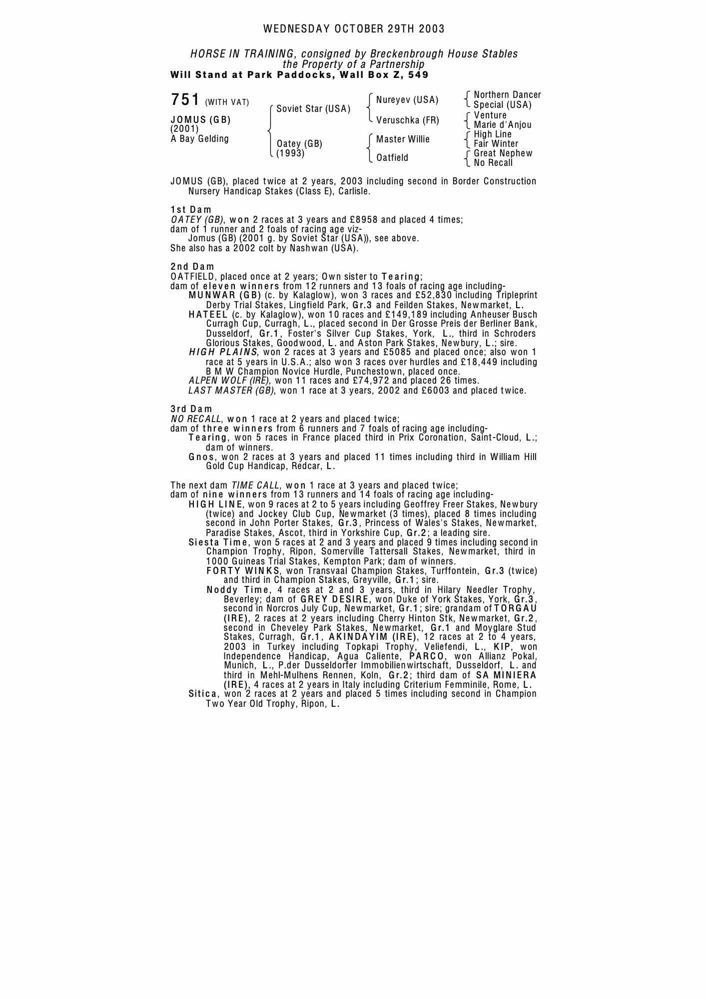 October Yearling Sale, Book 1 2003 lot 566 C. by Nashwan (USA) 2002, Voute Sales, Agent=>Andrew Balding 24,000 gns
