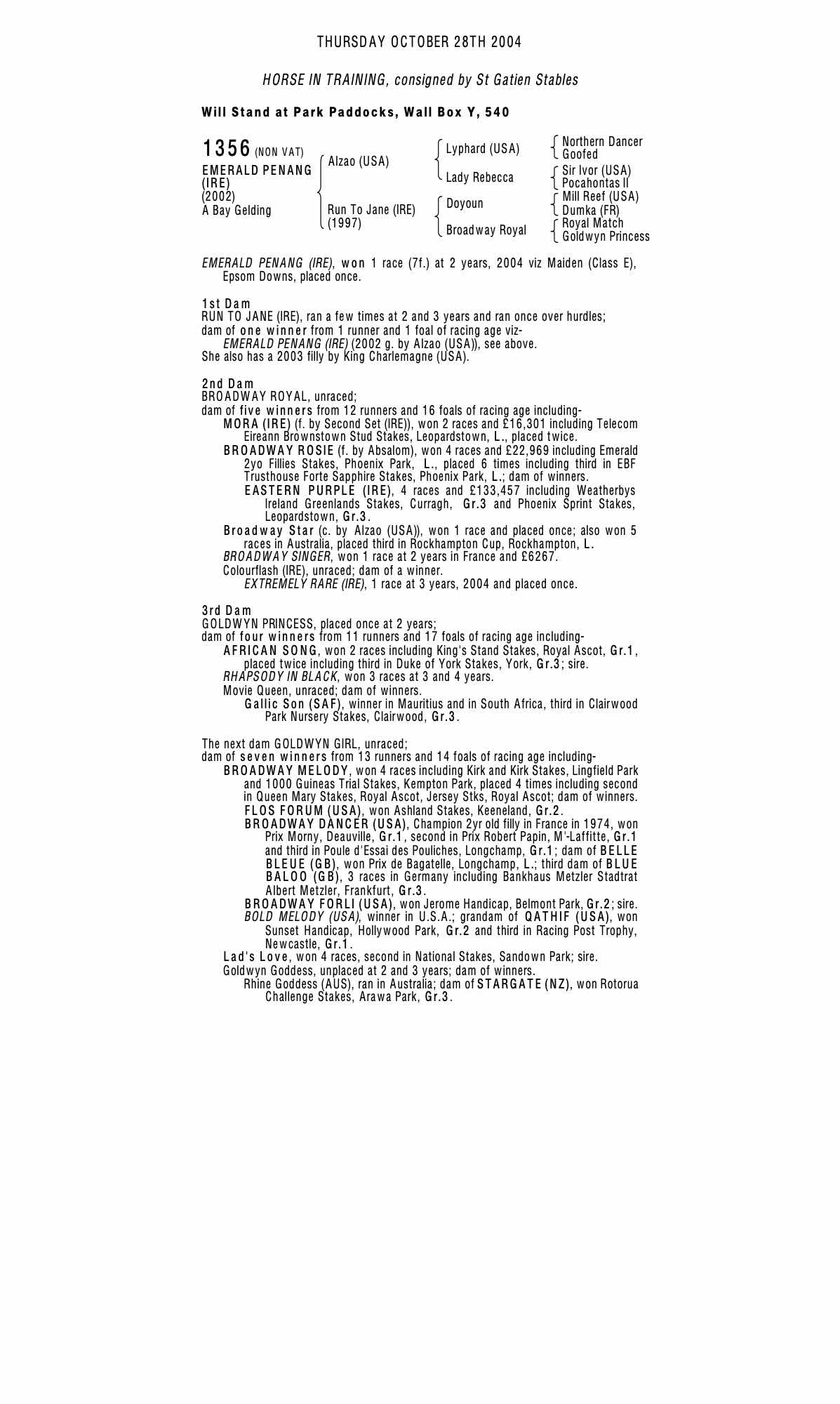 September Yearling Sale 2004 lot 232 F. by King Charlemagne (USA) 2003, Killmoney Cottage (Agent)=>Frank Barry €35,000