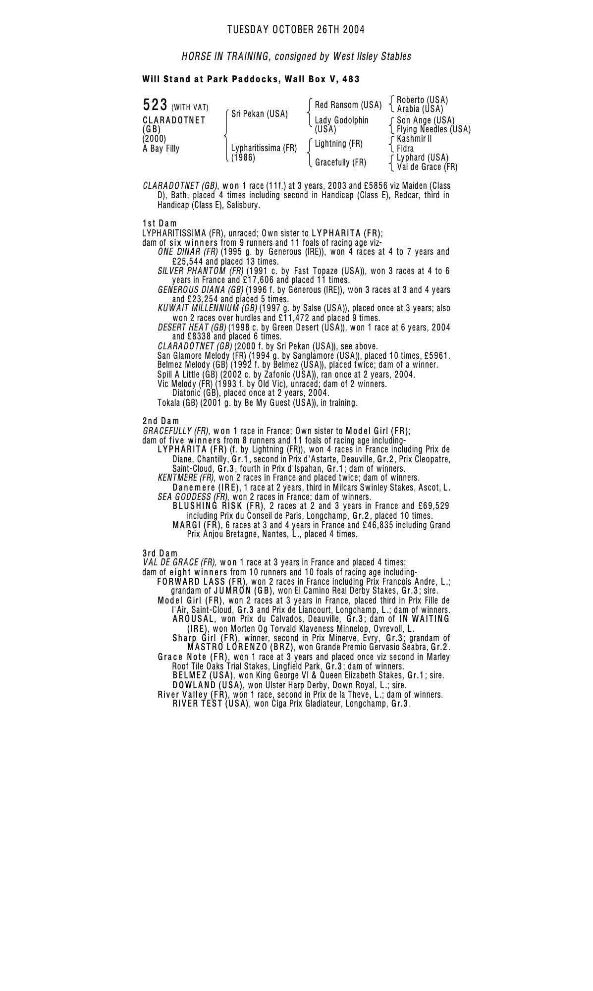 Autumn Horses in Training Sale 1999 lot 20 C. by Salse (USA) , Green Ridge Stables=>Greenfield Stud 8,500 gns