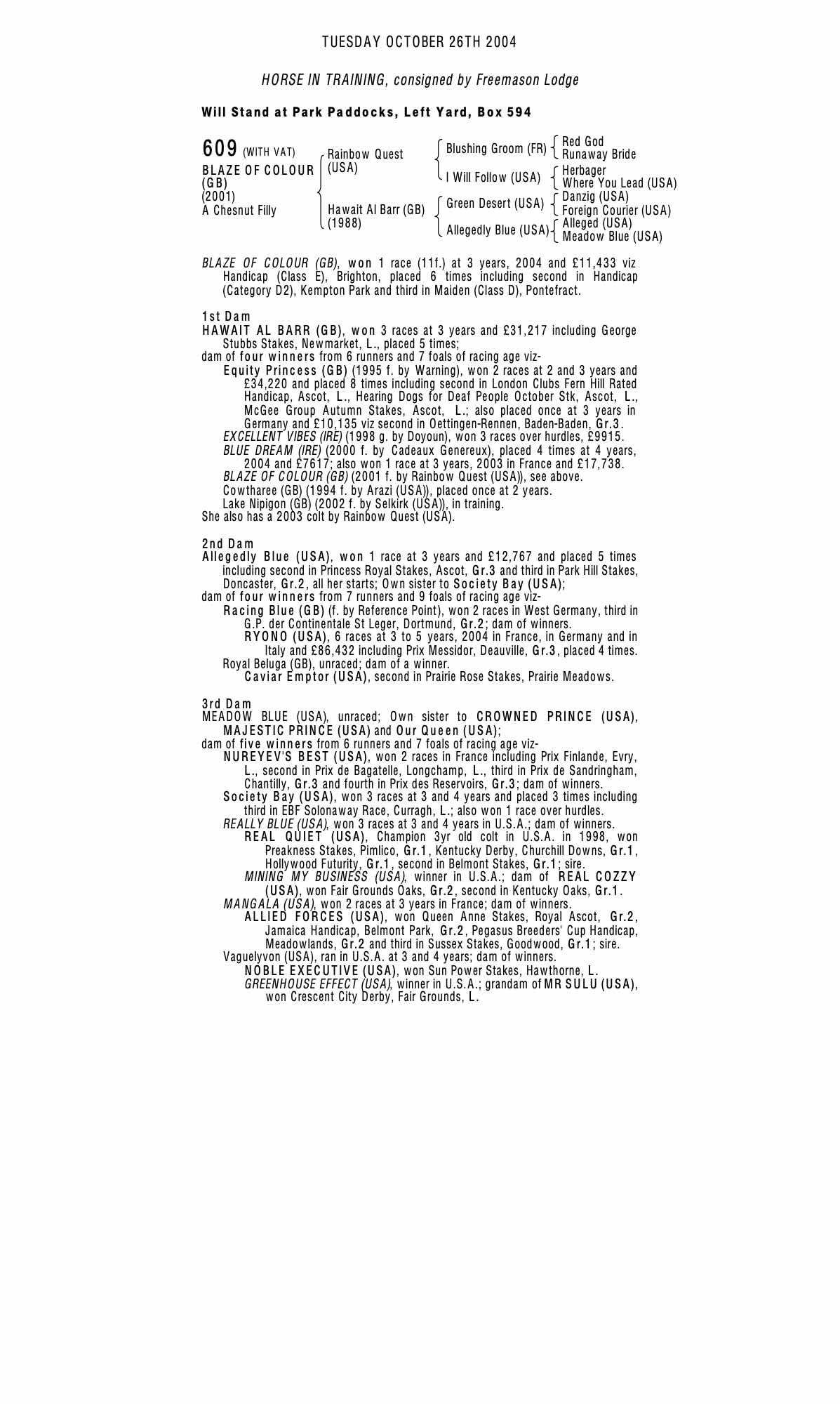 February Sale 2005 lot 34 Lake Nipigon (GB) (F. by Selkirk (USA)), John Troy, Agent=>River Flesk Stud 8,000 gns