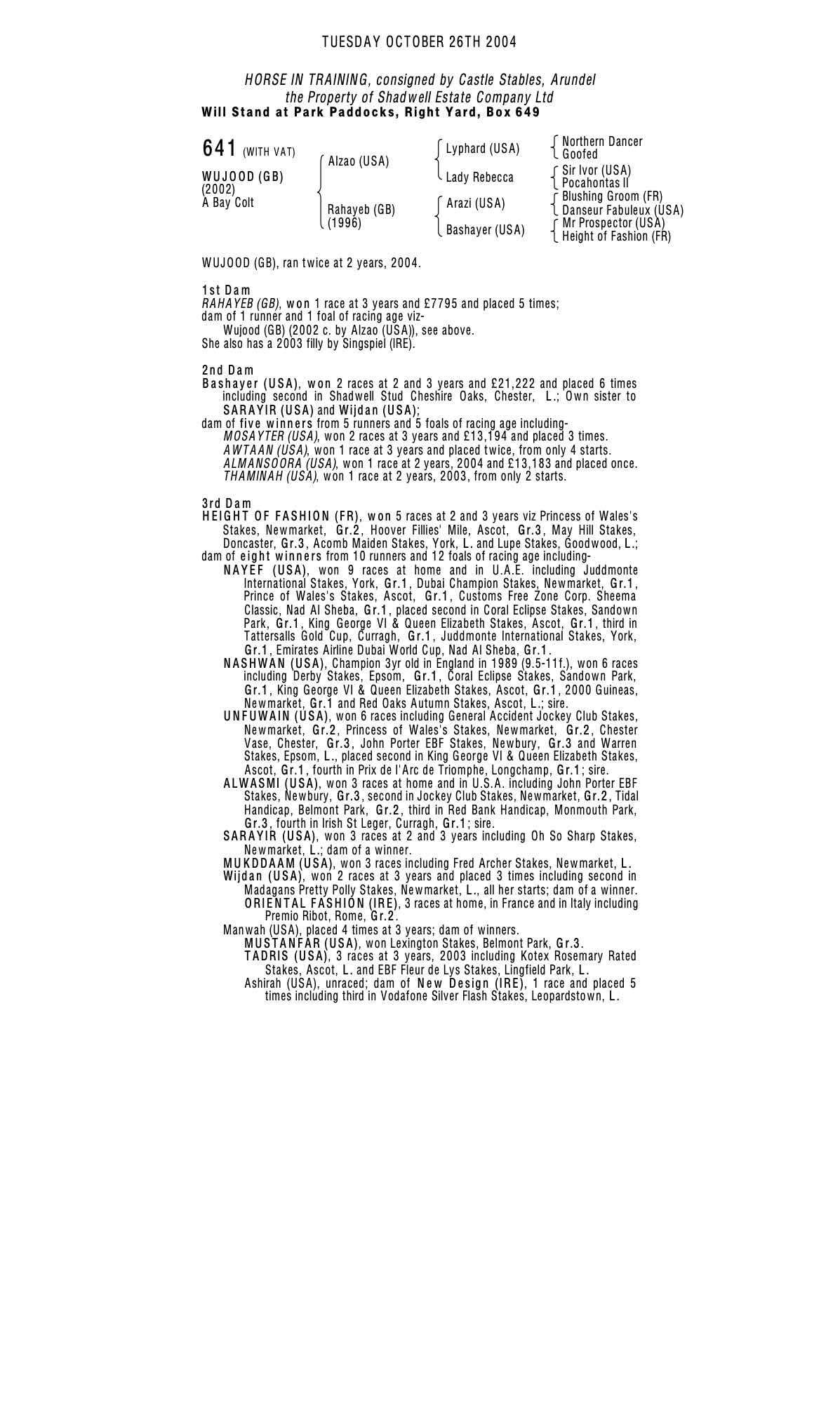 July Sale 2010 lot 686 Mashdood (USA) (G. by Sinndar (IRE)), Shadwell Stud=>P Hiatt 7,000 gns