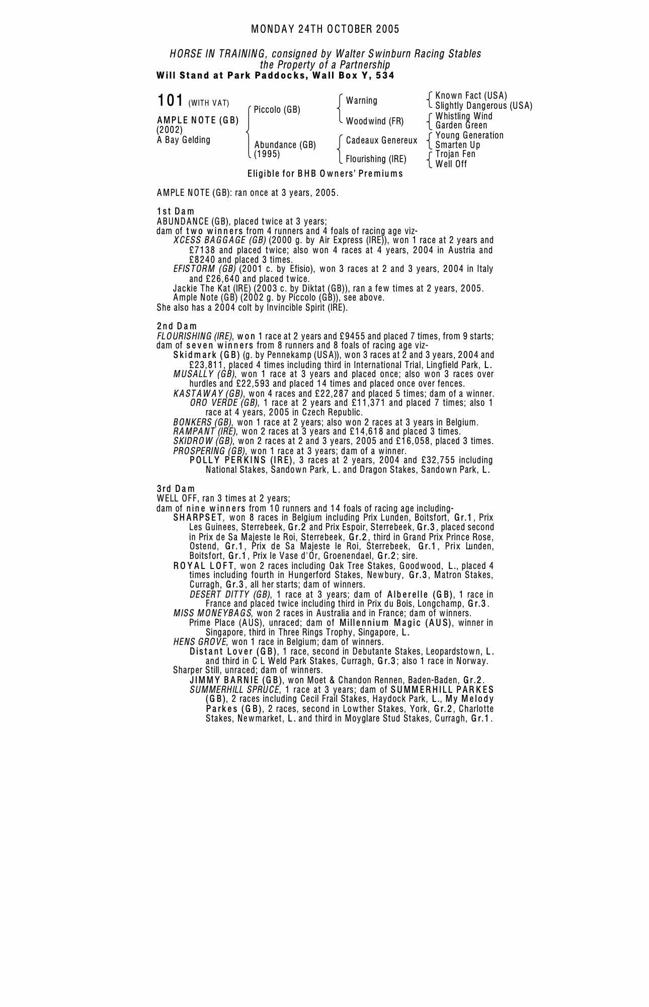 Autumn Horses in Training Sale 2005 lot 1125 Jackie The Kat (IRE) (C. by Diktat (GB)), Sahara Stables=>Yousef Ali Alkandri 2,500 gns
