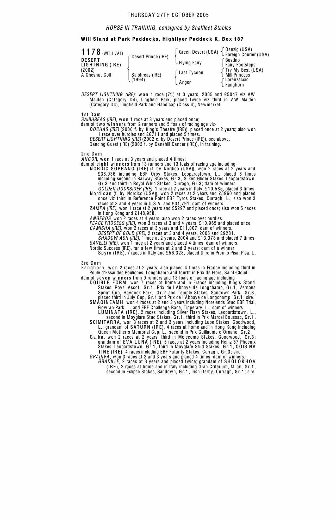 October Yearling Sale, Book 2 2004 lot 813 F. by Danehill Dancer (IRE) 2003, Croom House Stud, Ireland=>Equine Services 34,000 gns