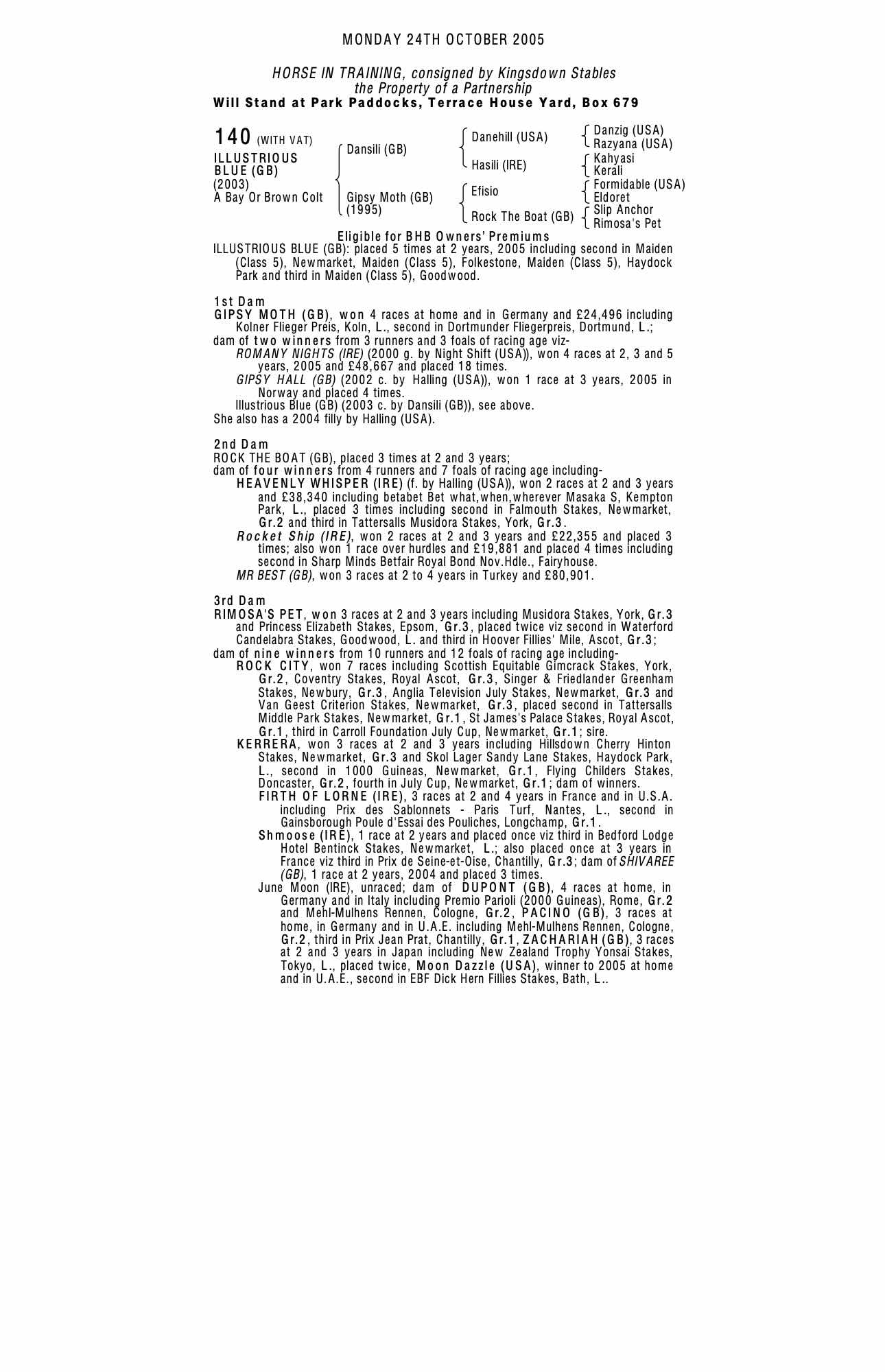 October Yearling Sale, Book 2 2004 lot 1505 C. 2003, Longholes Stud=>A Skiffington 28,000 gns