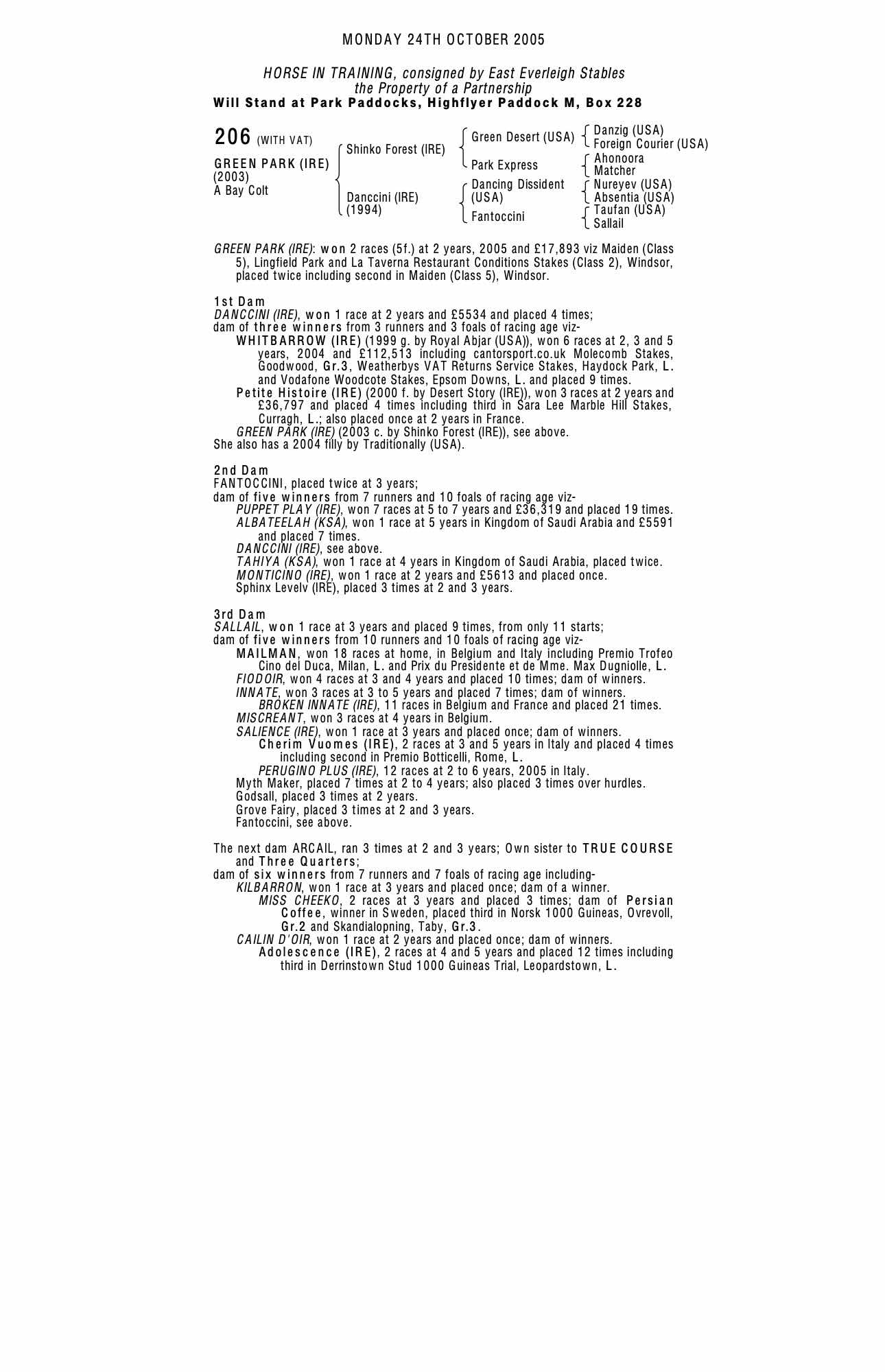 October Yearling Sale, Book 1 2004 lot 677 C. 2003, Lynn Lodge Stud, Ireland=>Peter Doyle Bloodstock 45,000 gns