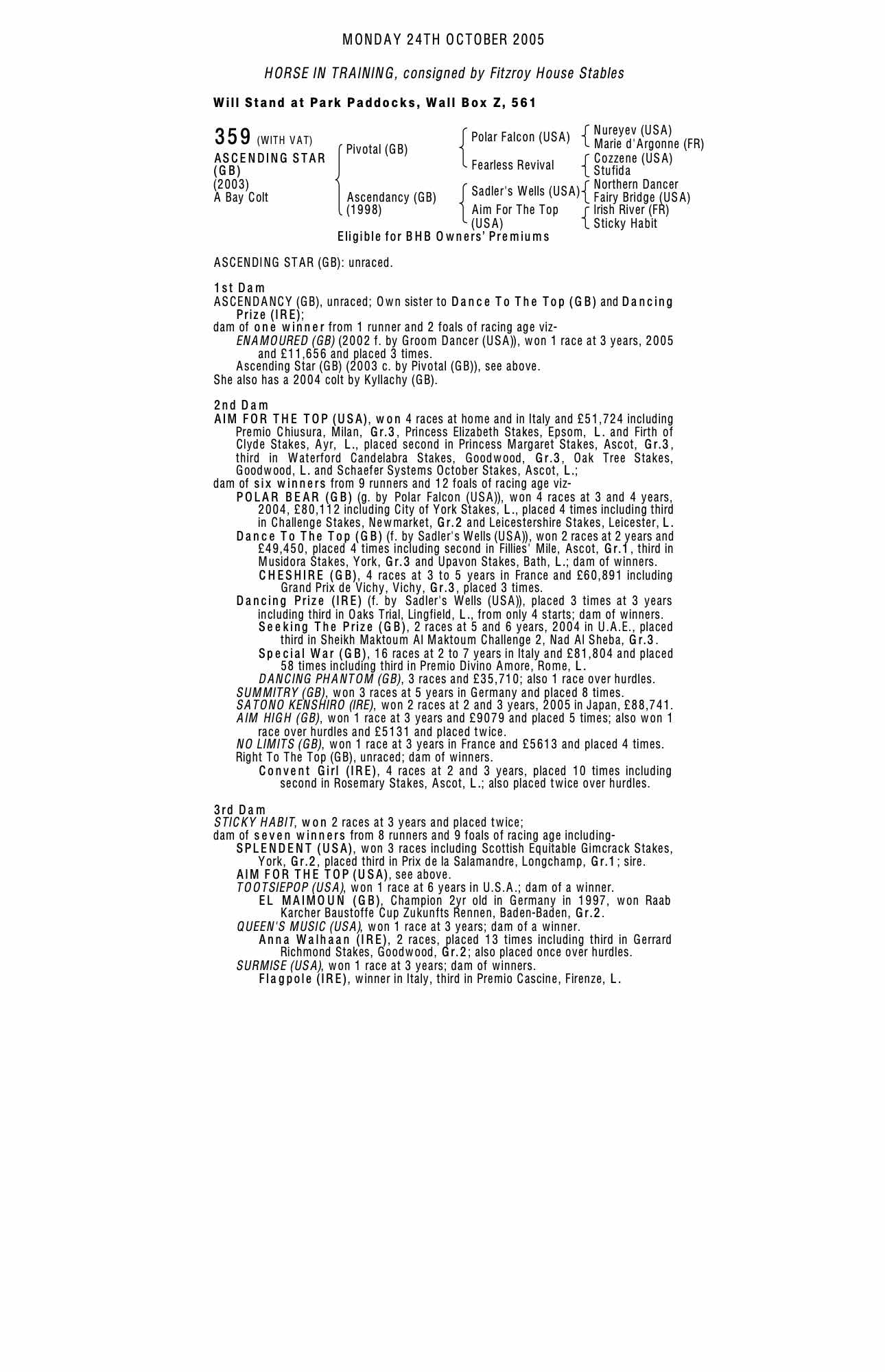 Consignor: Fitzroy House Stables