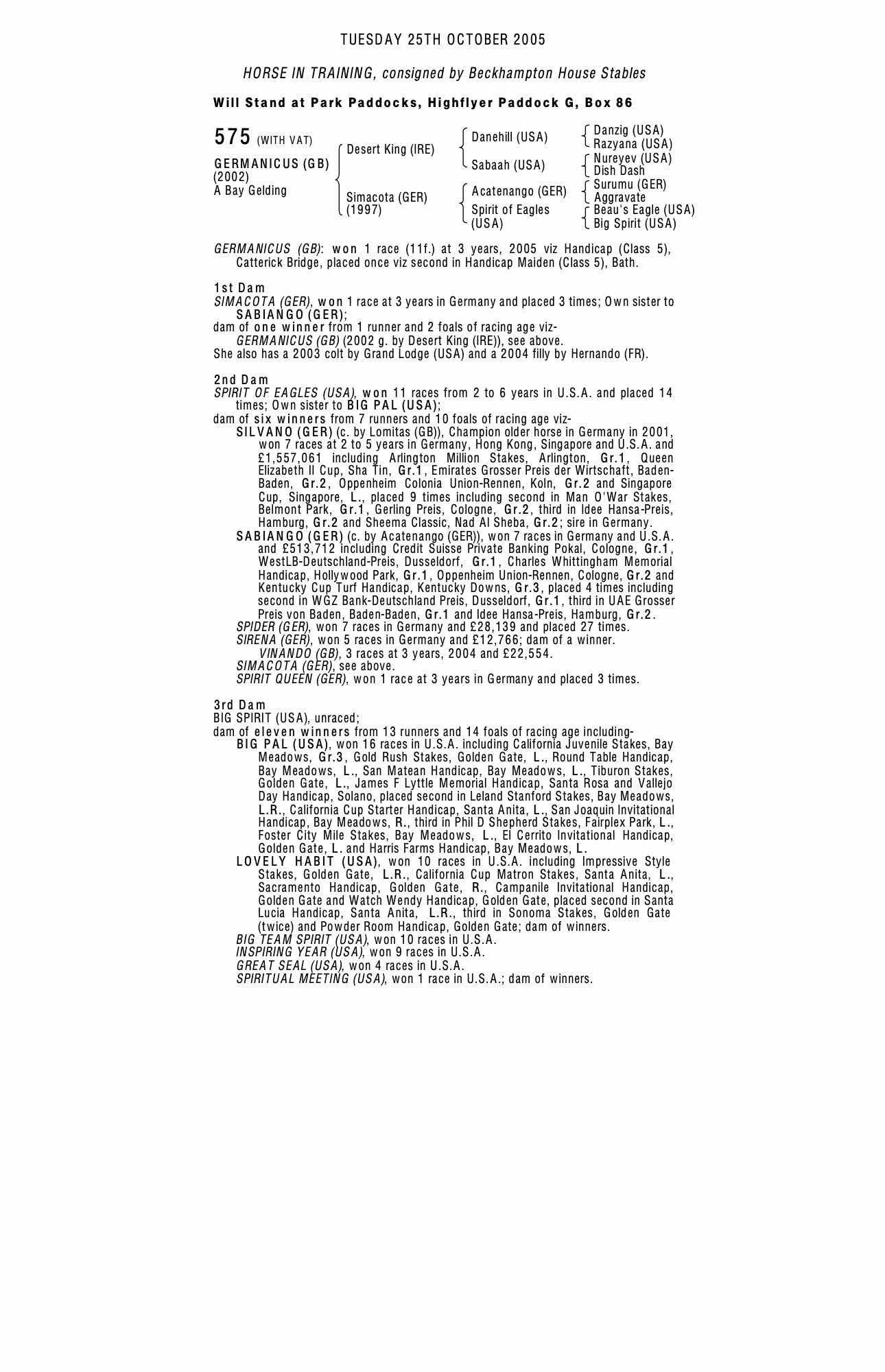 October Yearling Sale, Book 1 2005 lot 594 F. by Hernando (FR) 2004, Minster Stud=>Gordian Troeller Bloodstock 50,000 gns