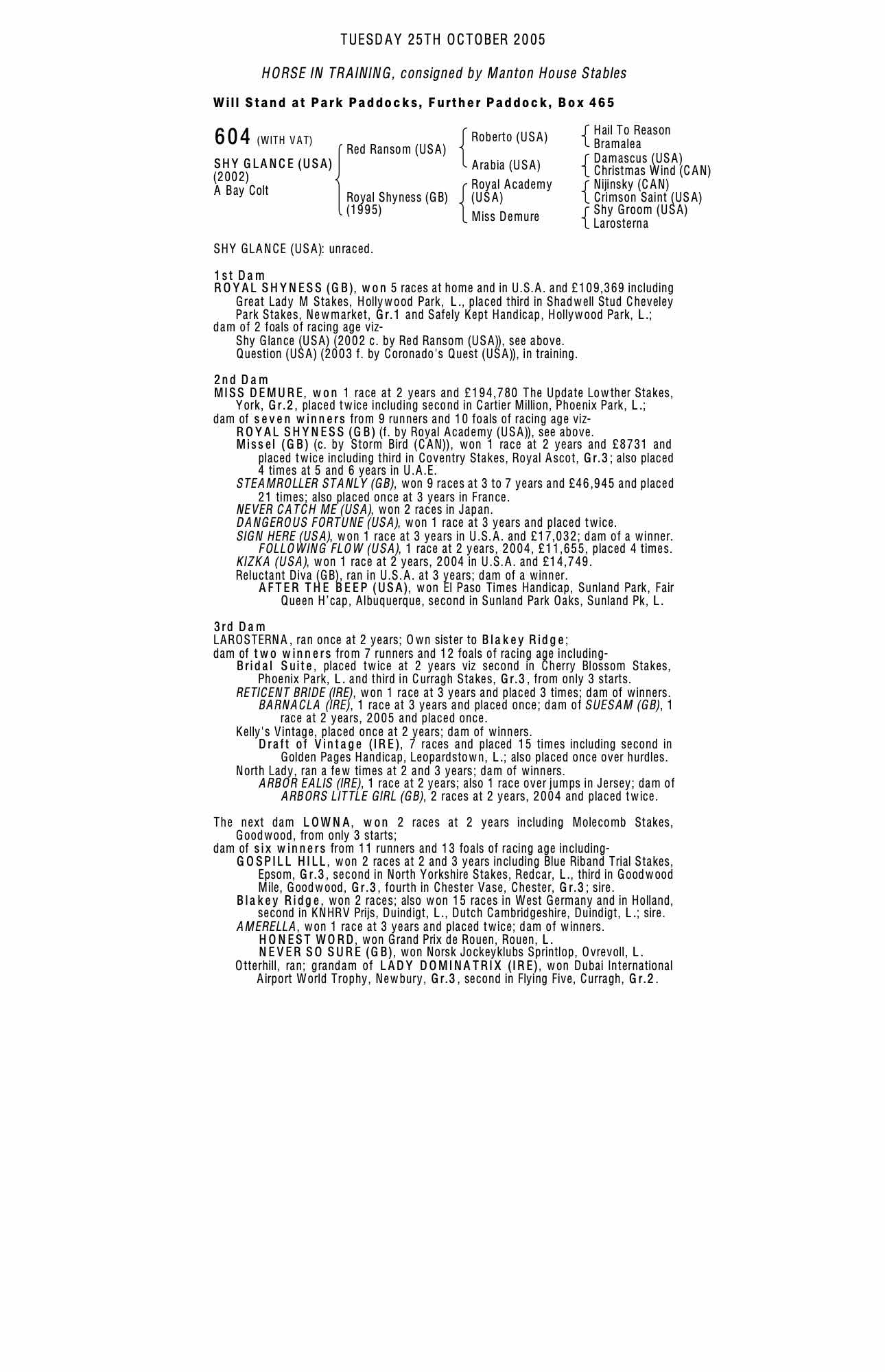 Consignor: Manton House Stables
