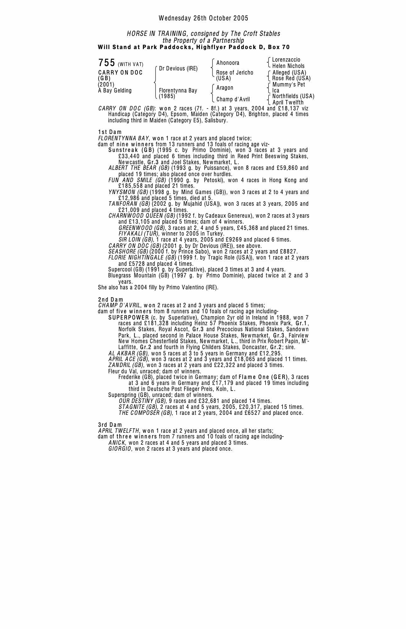 October Yearling Sale, Book 2 2005 lot 1454 F. by Primo Valentino (IRE) 2004, Bearstone Stud=>Aleksandar Pavlovic 3,000 gns