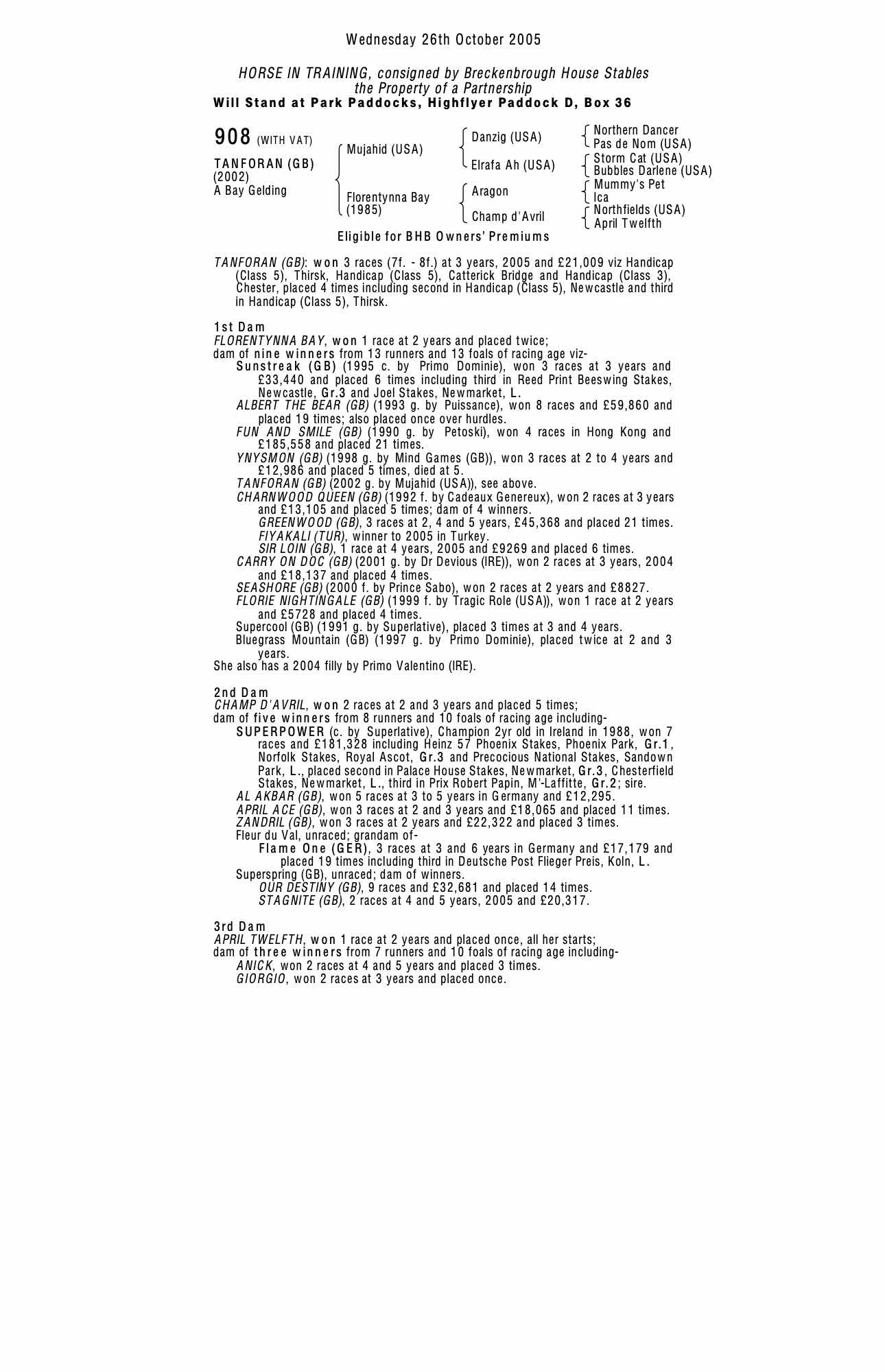 Autumn Yearling Sale 2000 lot 1369 F. by Tragic Role (USA) , Bearstone Stud=>Vendor 8,000 gns