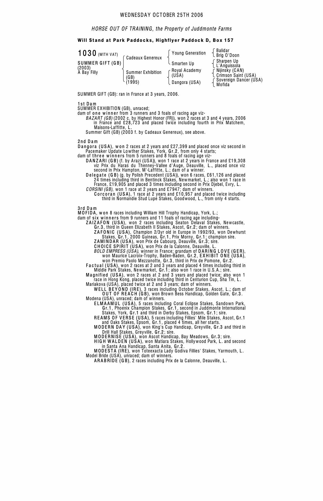 December Mare Sale 2003 lot 2611 Summer Circus (GB) (F. by Lion Cavern (USA)), Juddmonte Farms=>BBA Germany 1,700 gns