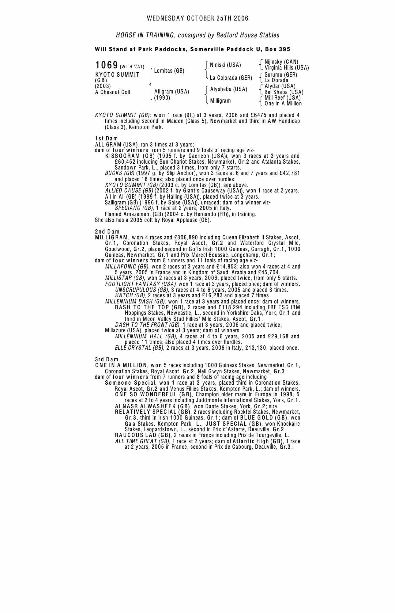 December Mare Sale 2005 lot 2541 Salligram (GB) (M. by Salse (USA)), Trainers House Enterprises Ltd.=>Grange srl 8,500 gns