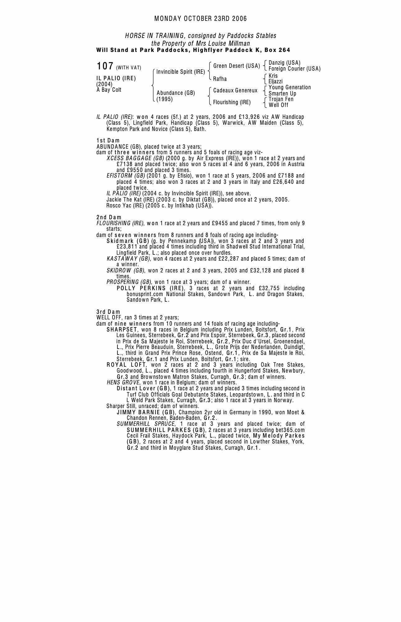 October Yearling Sale, Book 2 2004 lot 1665 C. by Diktat (GB) 2003, Jamie Railton, Agent=>Debbie Mountain 13,000 gns