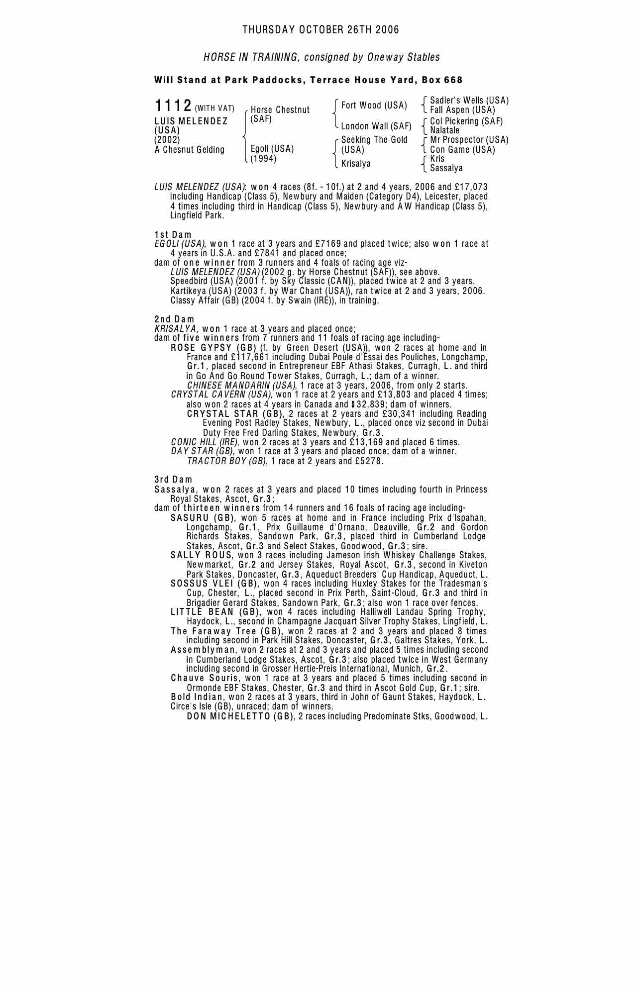 July Sale 2006 lot 826 Kartikeya (USA) (F. by War Chant (USA)), Pegasus Stables=>Acaymo Rodriguez Peces 3,000 gns