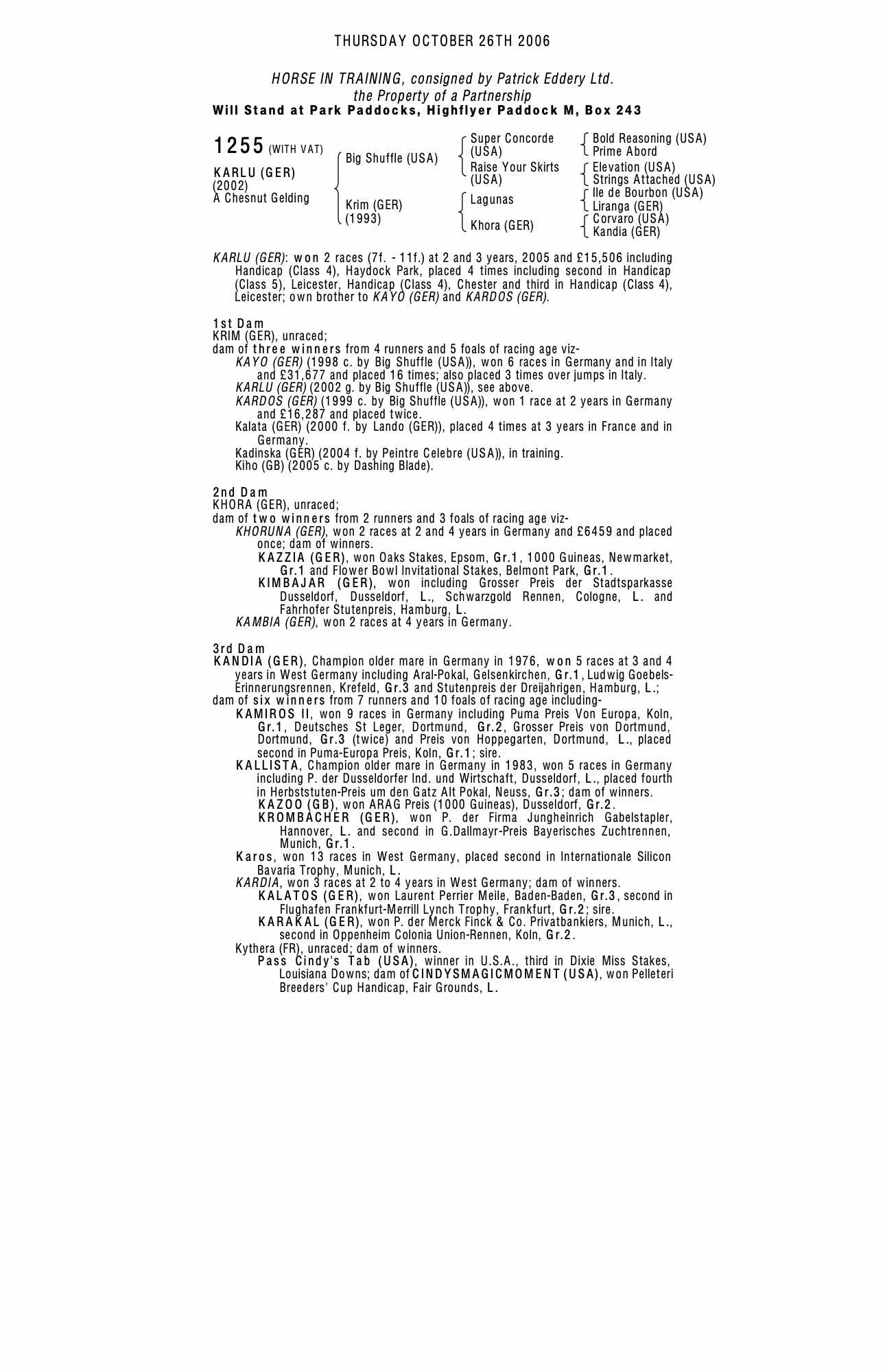 October Yearling Sale, Book 1 2003 lot 254, Heatherwold Stud=>Patrick Eddery Racing 32,000 gns