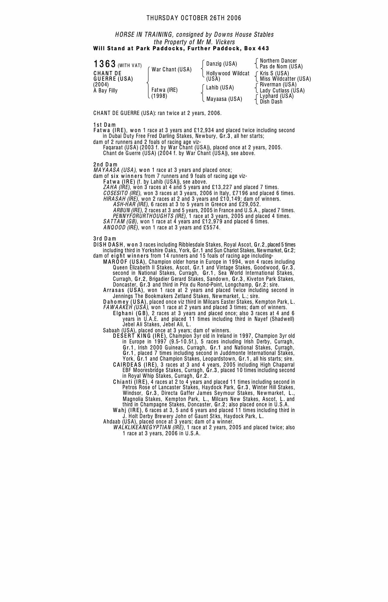 February Sale 2007 lot 220 Faqaraat (USA) (F.), Shadwell Stud=>Georgios Kontis 1,500 gns