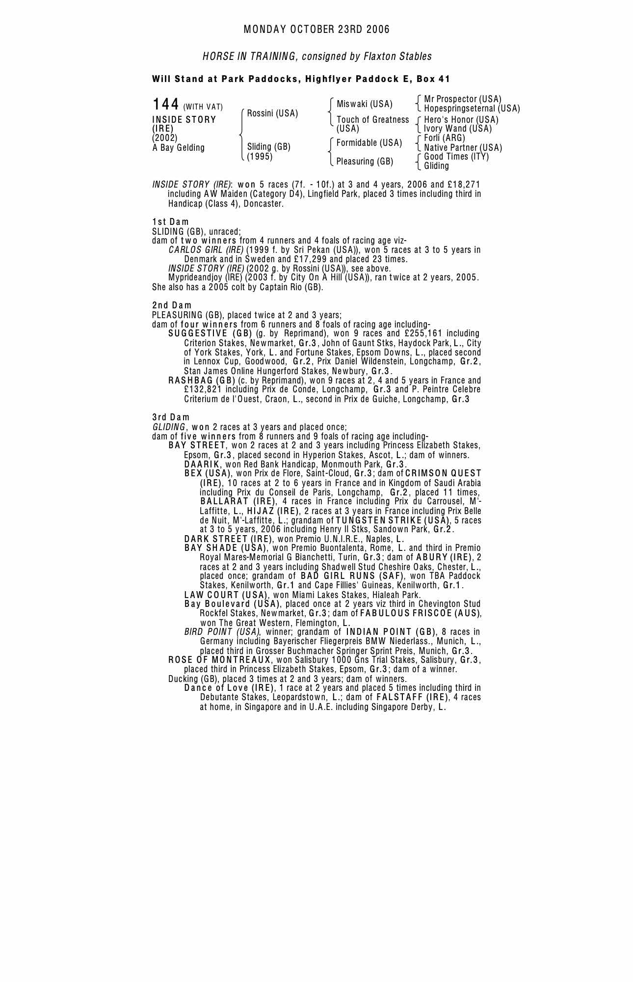 October Yearling Sale, Book 2 2006 lot 1210 C. by Captain Rio (GB) 2005, Michael Downey, Agent=>Shadwell Estate Company 300,000 gns